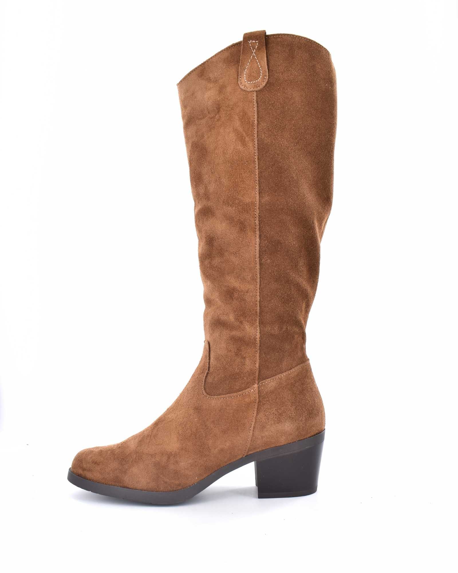 Botas Tejanas en piel de serraje de caña alta con suela de goma antideslizamiento con un tacón entre 5 cm y 6 cm