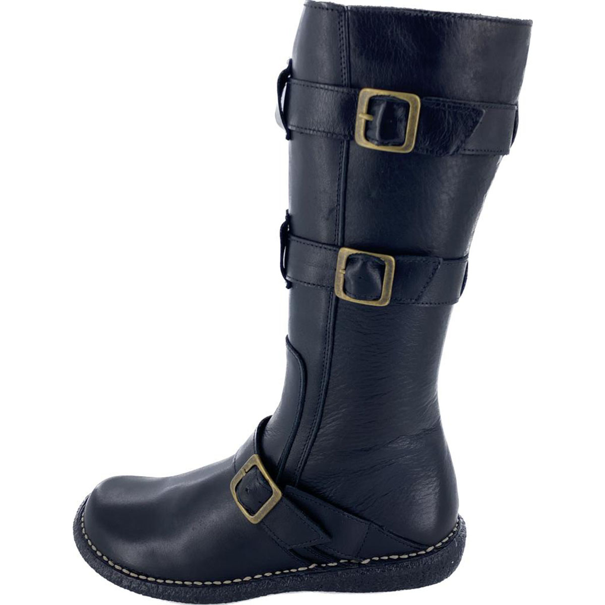 Botas en piel de caña alta con hebilla en el tobilloy suela de goma antideslizante con un tacón entre 2 cm y 3 cm