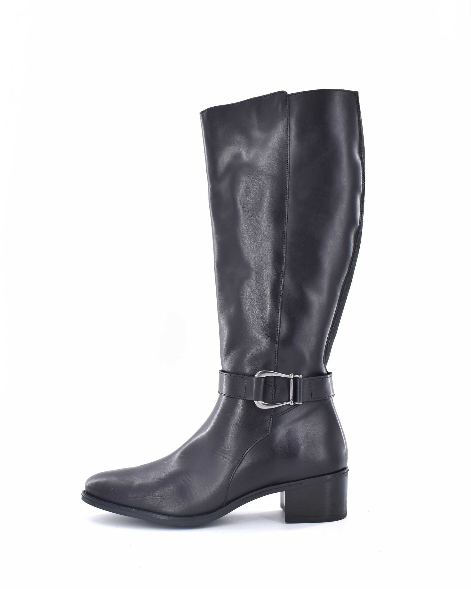 Botas en piel de caña alta con hebilla en el tobillo y suela de goma antideslizante con un tacón entre 3 cm y 4 cm