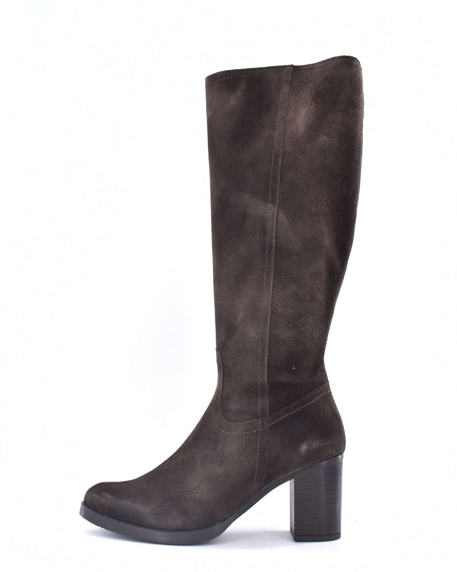 Botas en piel ante de caña alta con suela de goma antideslizante con un tacón entre 8 cm y 9 cm