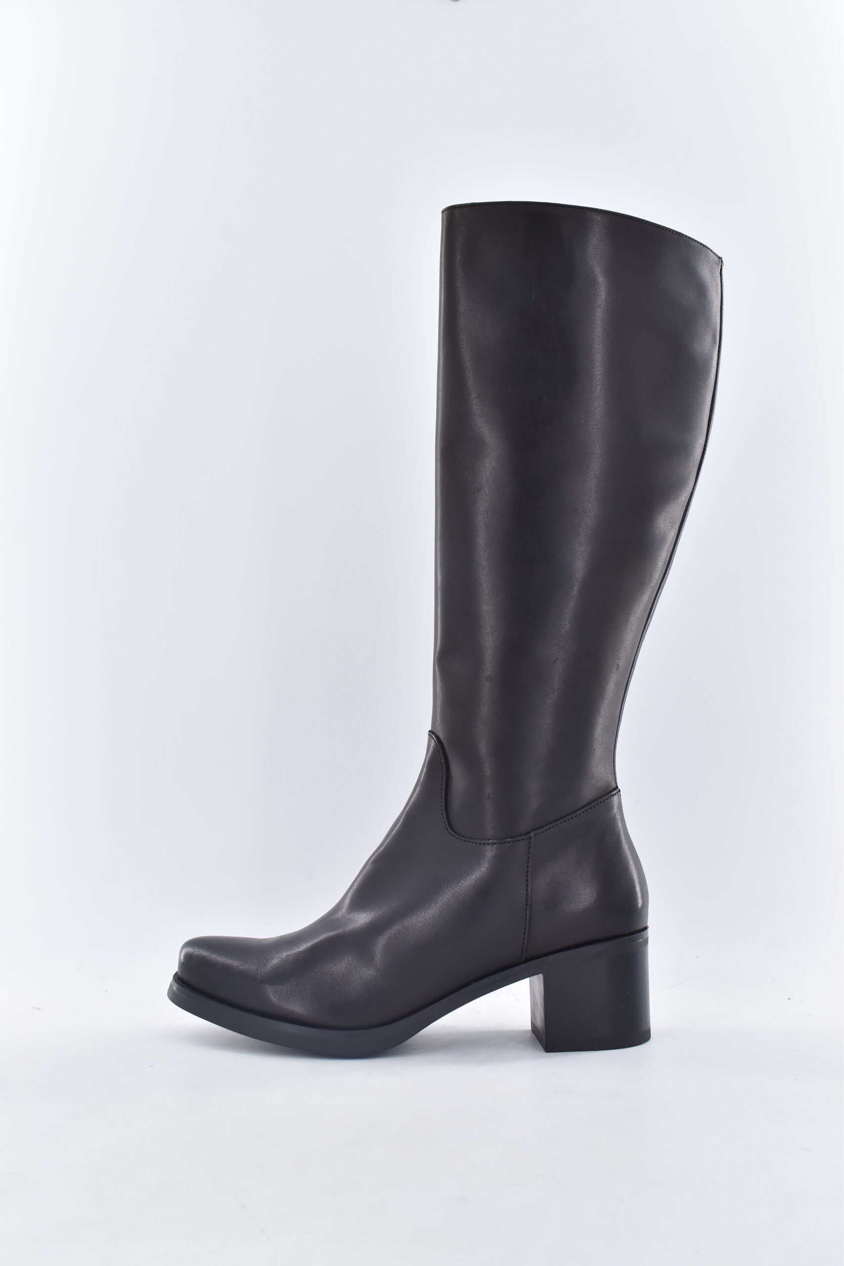 Bota en piel de caña alta con cremallera con piso de cuero con un tacón entre 1 cm y 3 cm