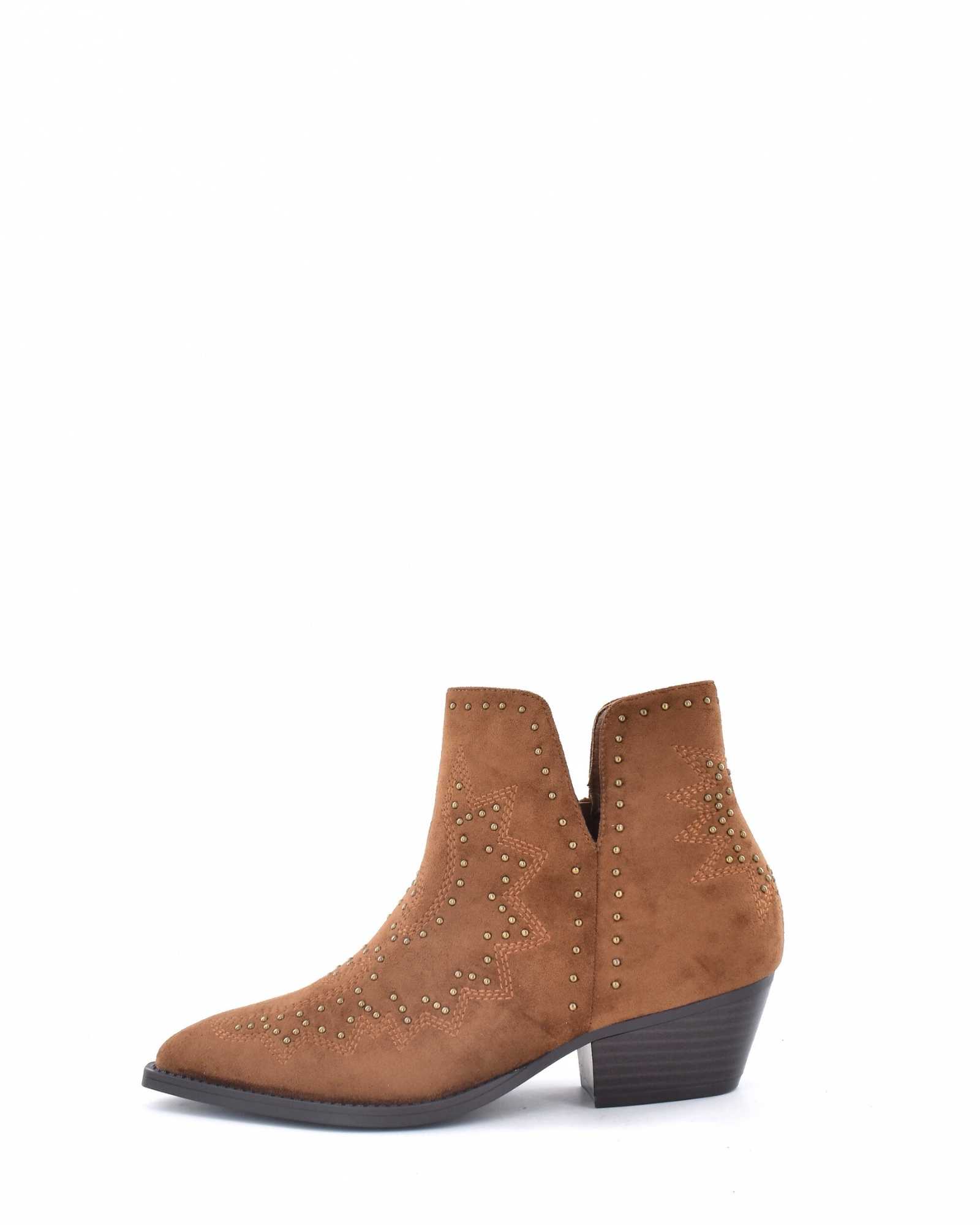 Botín Tejano en polipiel con decoración de tachuelas con suela de goma Antideslizante con un tacón entre 3 cm y 4 cm