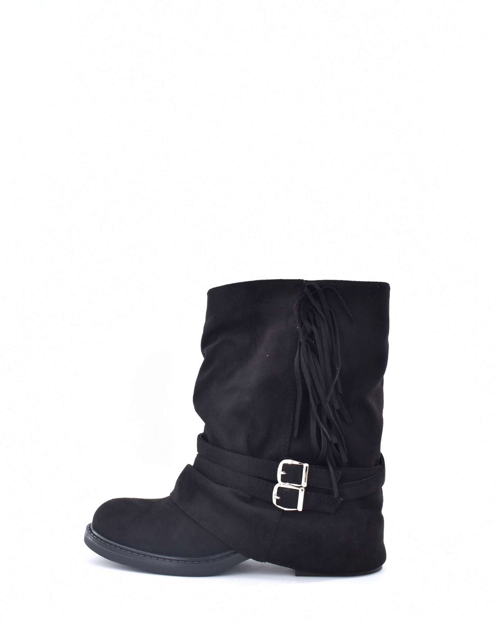 Botin Plegado Cremallera Flecos Black