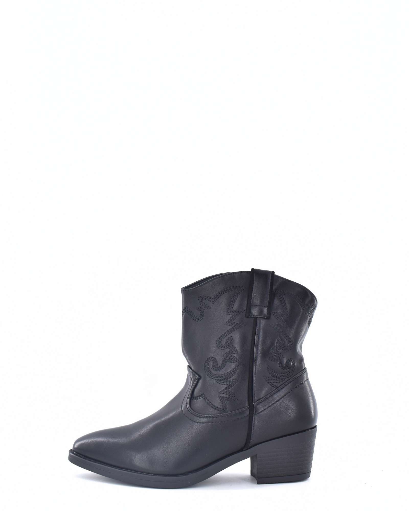 Botín Tejano en polipiel con decoración de bordado con suela de goma Antideslizante con un tacón entre 3 cm y 4 cm
