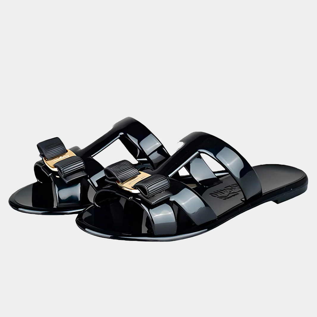 Sandalia Slide Negra Cuero S.F.