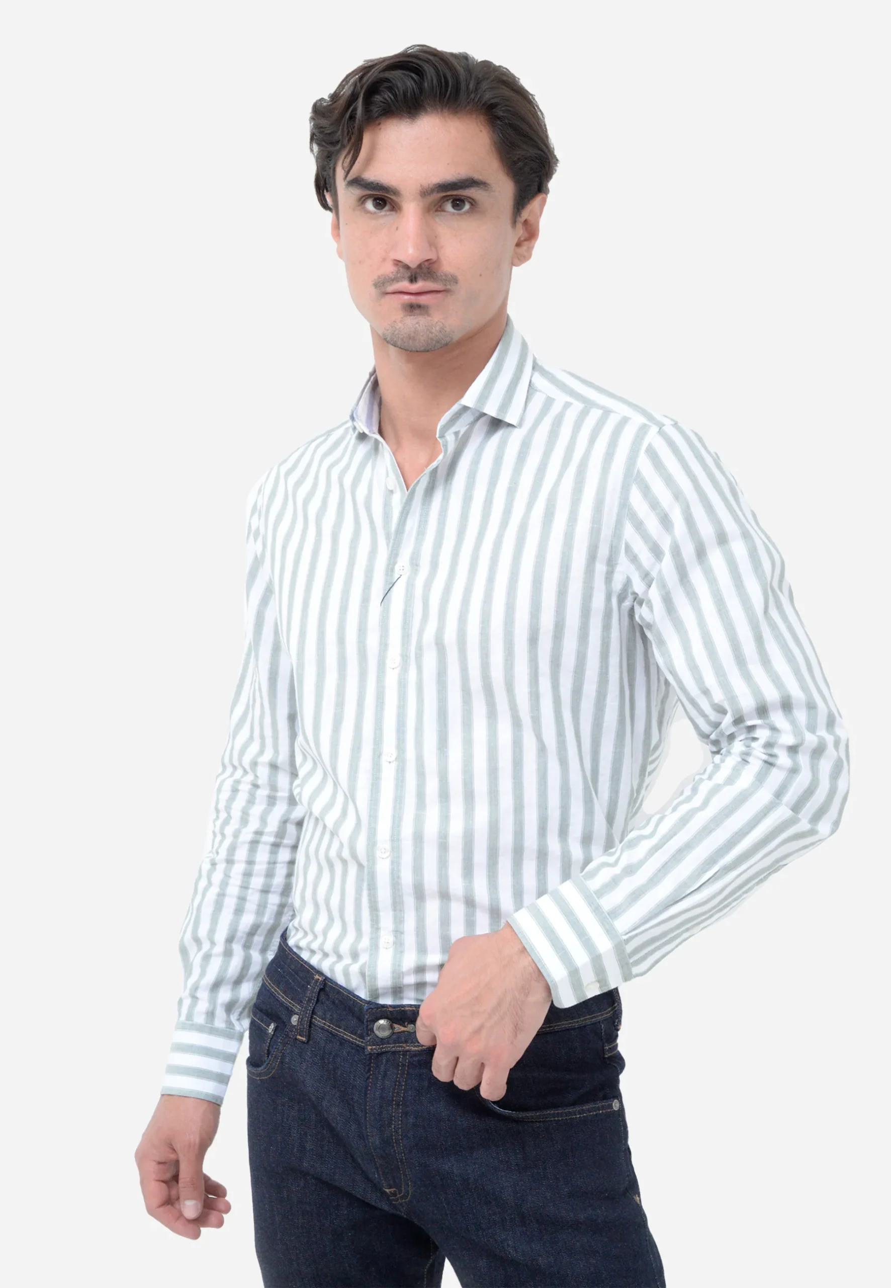 Camisa Blanca Rayas Azules Clásica H.L.