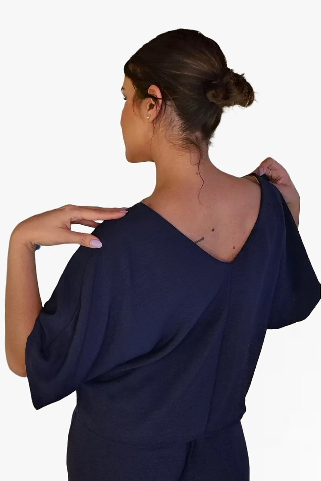Camisa Escote Fluida Azul Marino