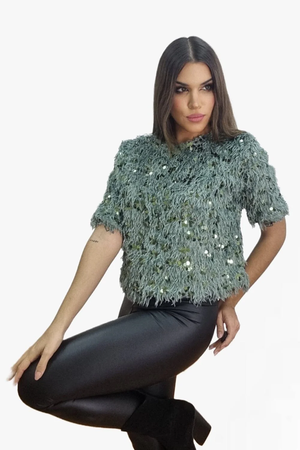 Camisa Fleco Lentejuela Verde