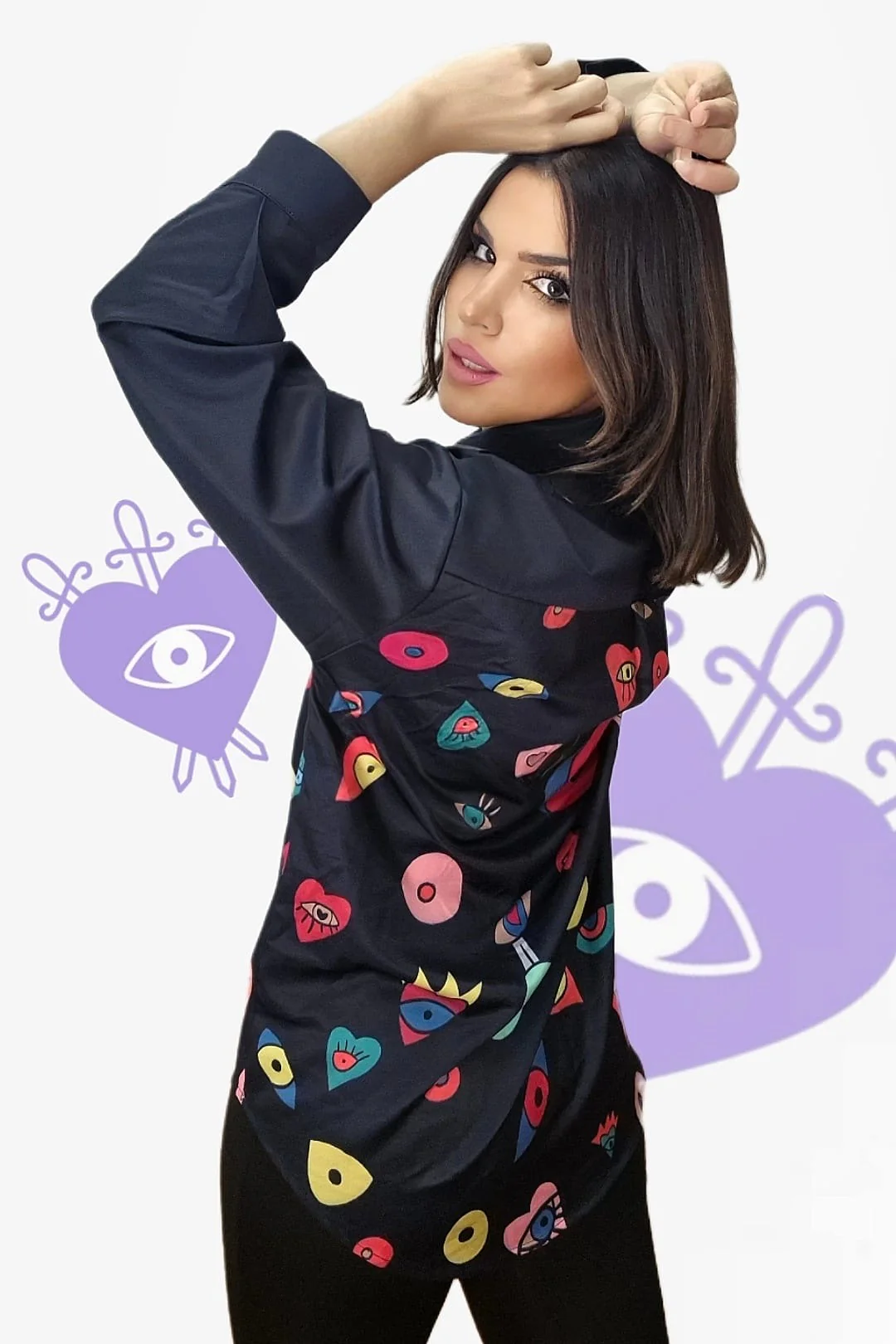 Camisa Formas Corazon Colores Negra