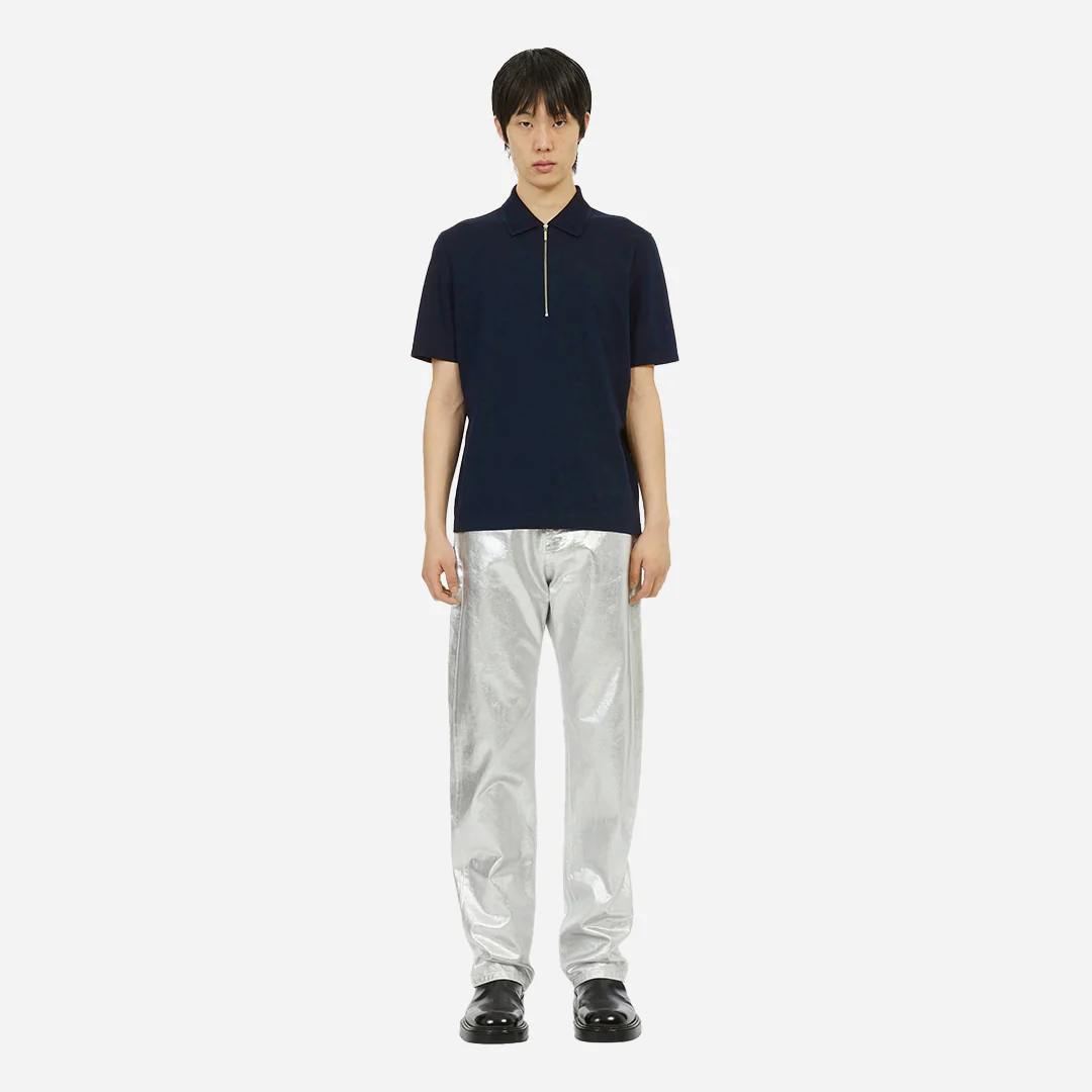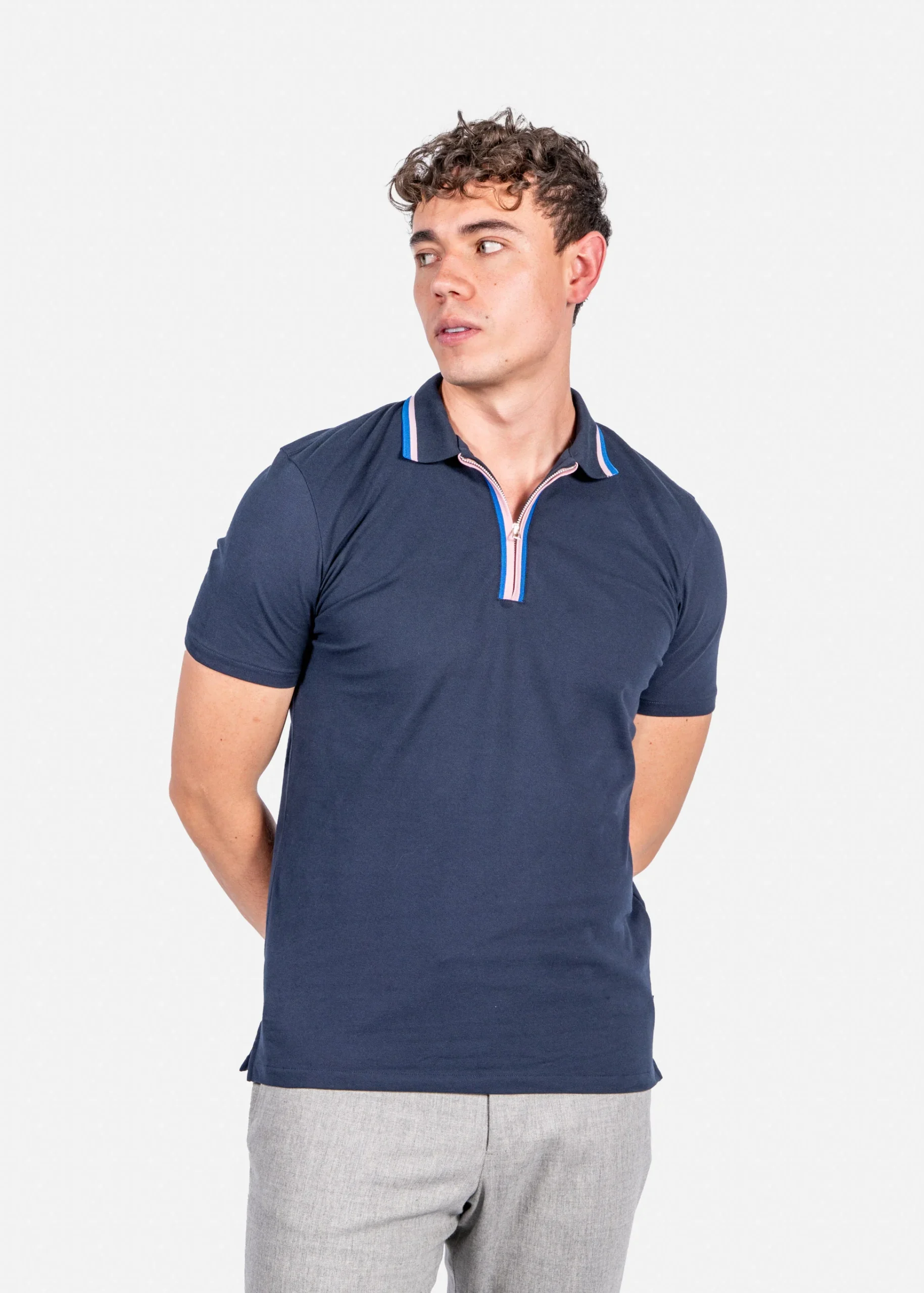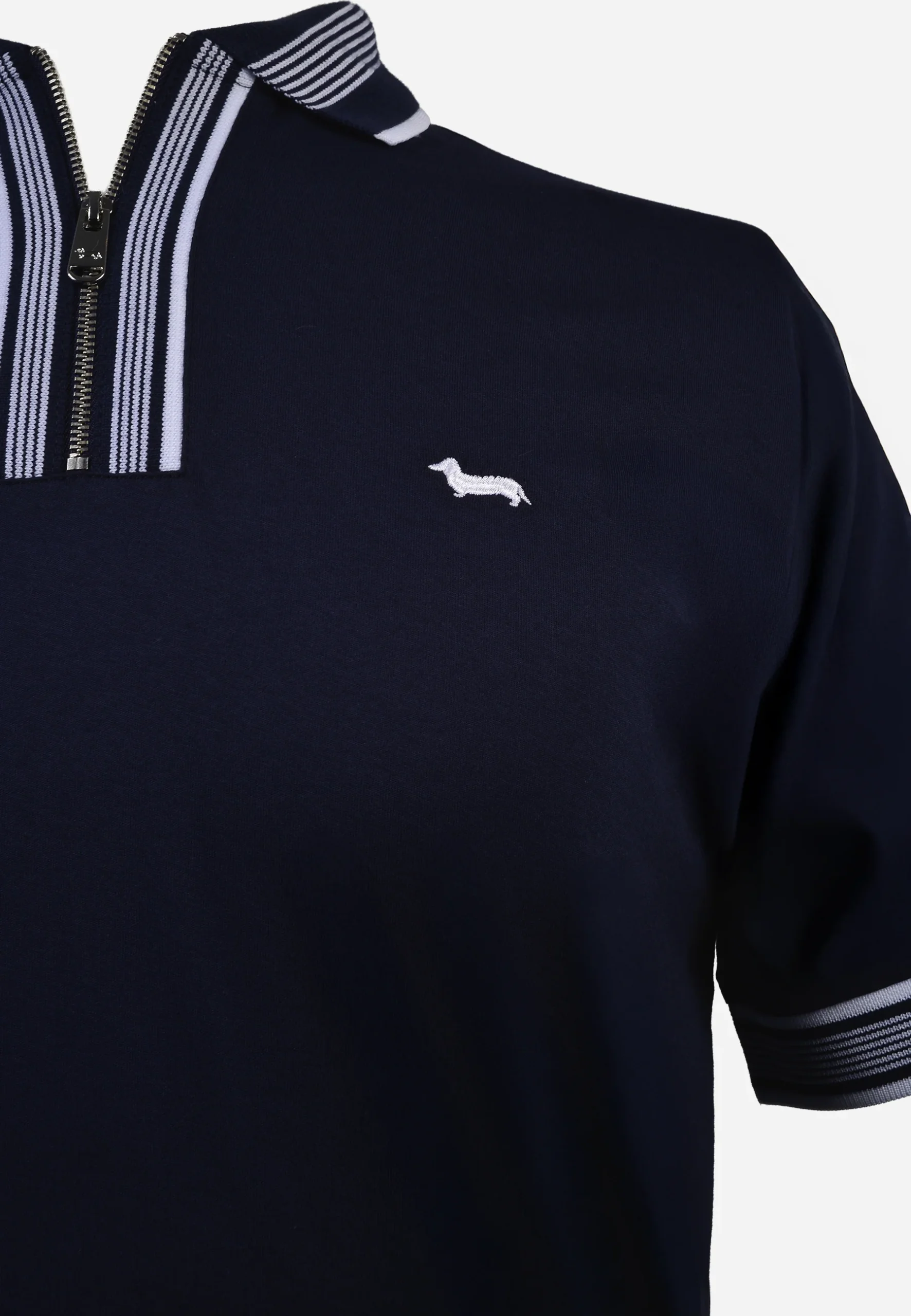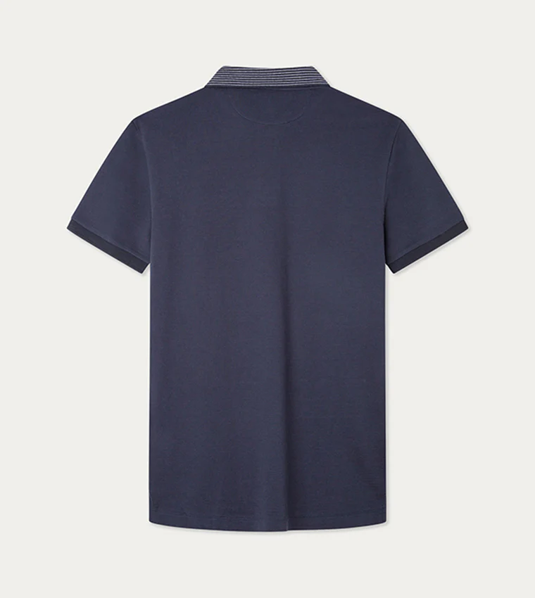 Camiseta Polo Azul Marino Cuello Tejido Gris H.L.