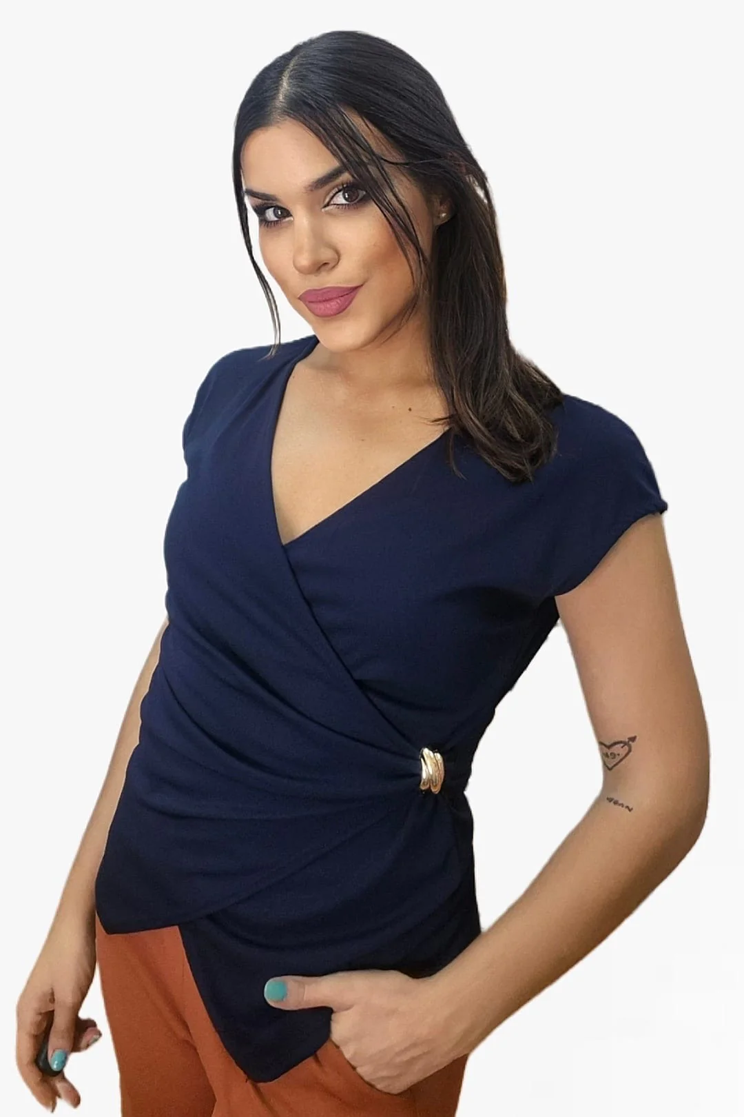 Camiseta Cruzada Broche Azul