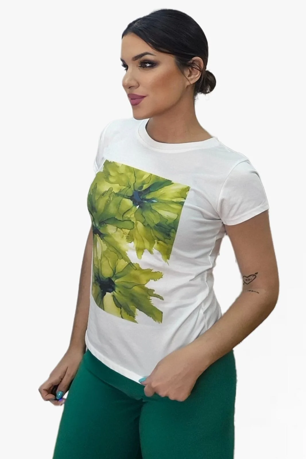 Camiseta Flor Verde Acuarela
