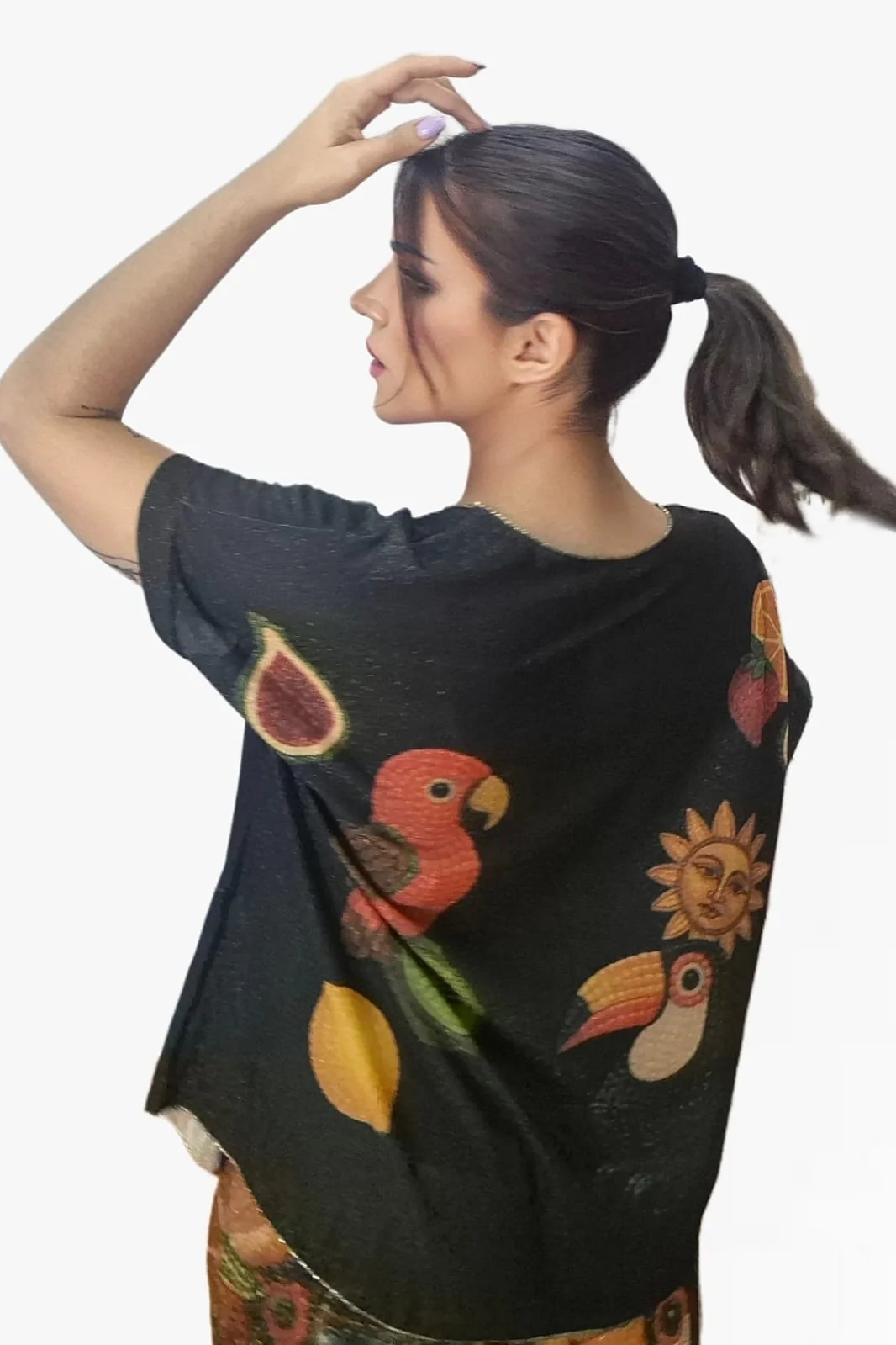 Camiseta Cruzada Broche Negra