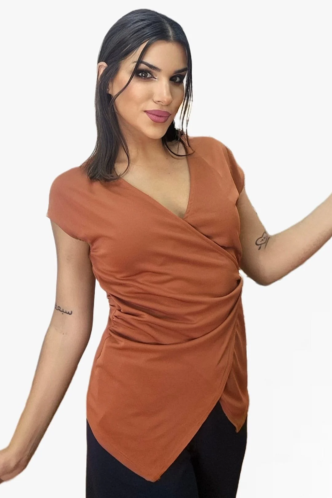 Camiseta Cruzada Broche Marrón