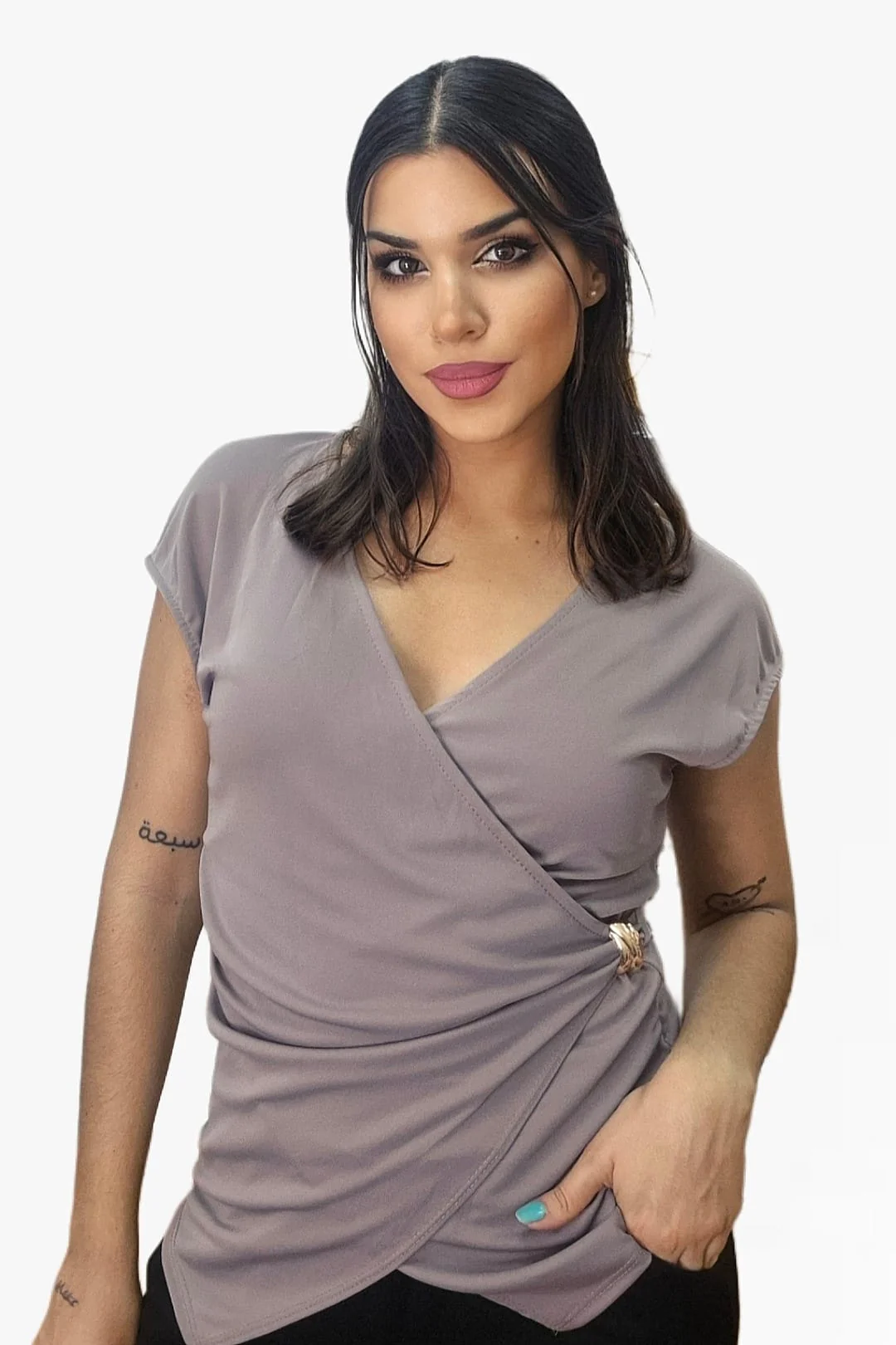 Camiseta Cruzada Broche Beige