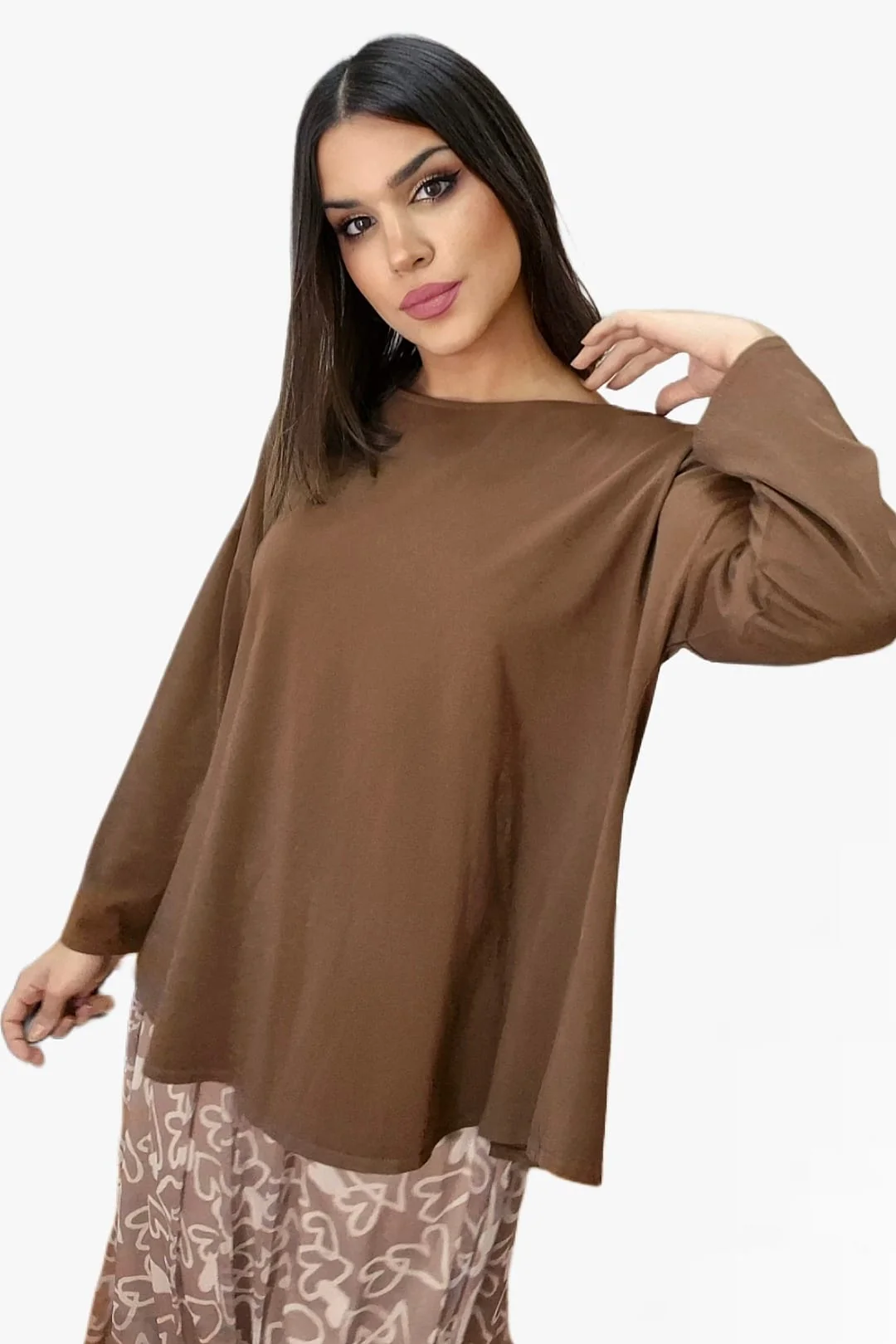 Camiseta Manga Evase Marrón