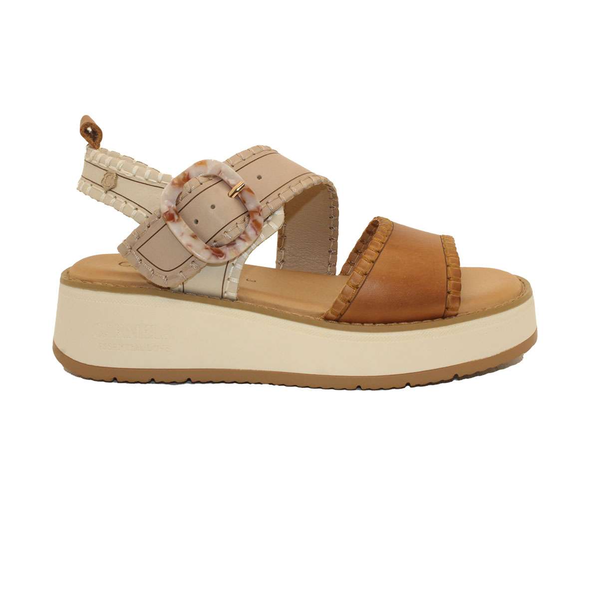 SANDALIA CUÑA PLATAFORMA PIEL HEBILLAS (16139301) CAMEL – CARMELA
