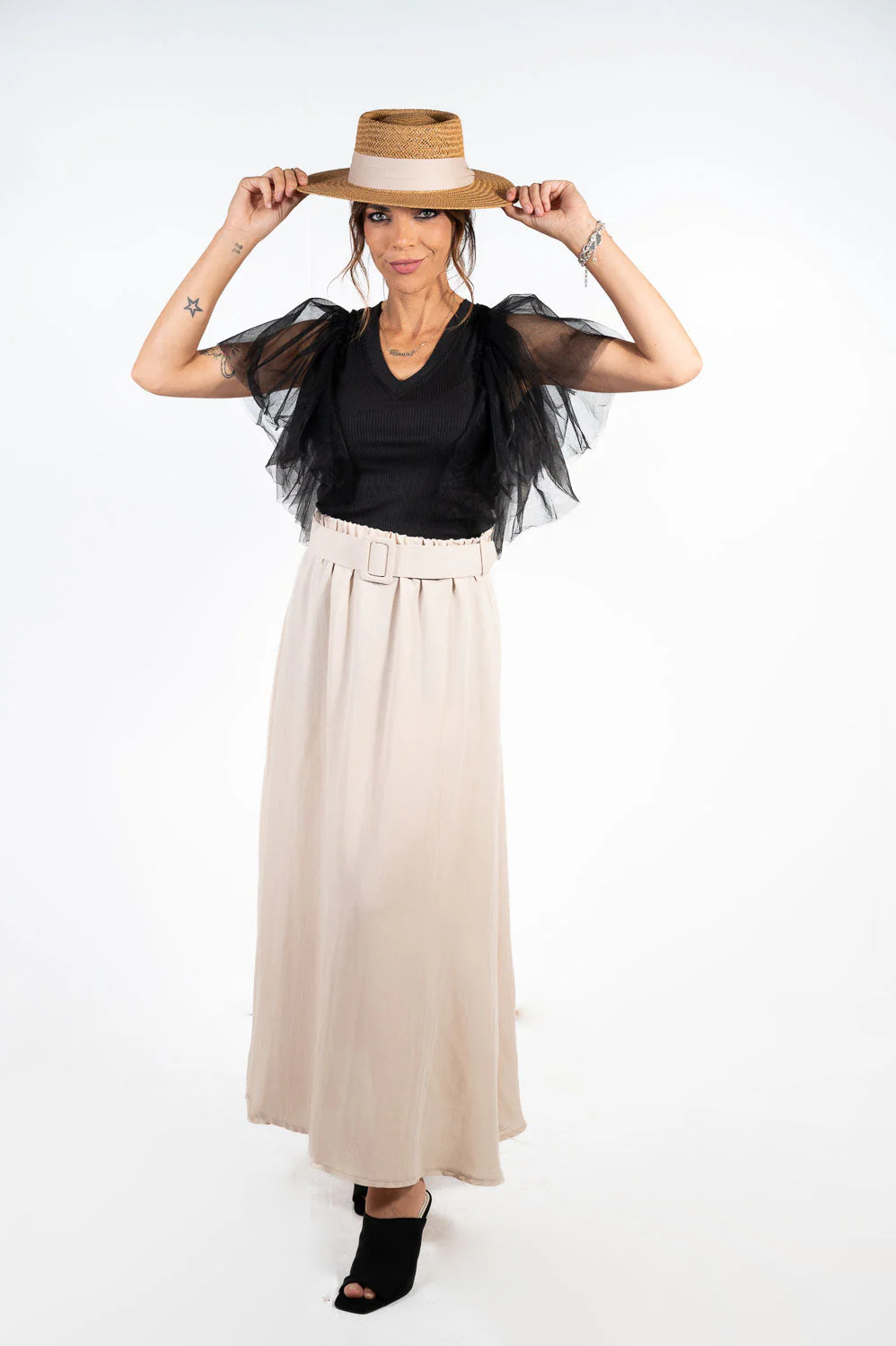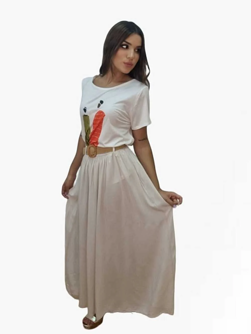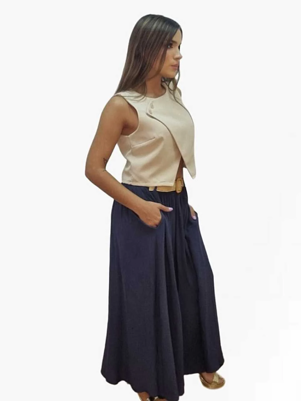 Falda Fluida Cinturon Beige