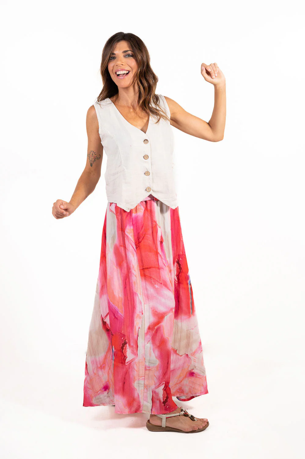 Falda Fluida Tie-Dye Fucsia