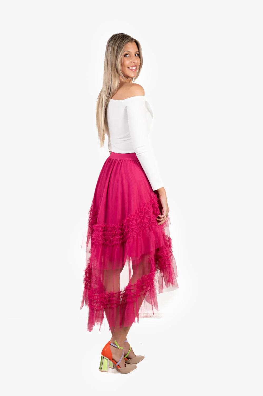 Falda Tul Irregular Fucsia