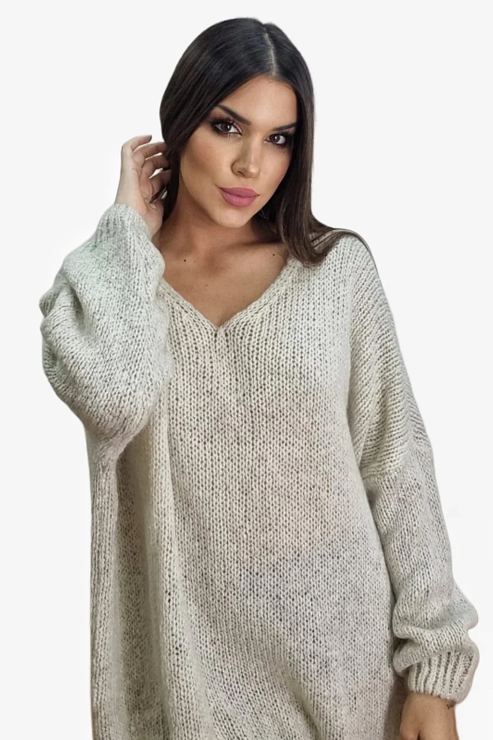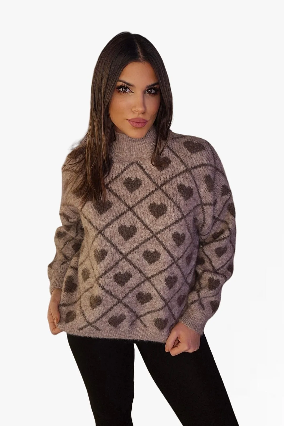 Jersey Corazones Cuello Beige