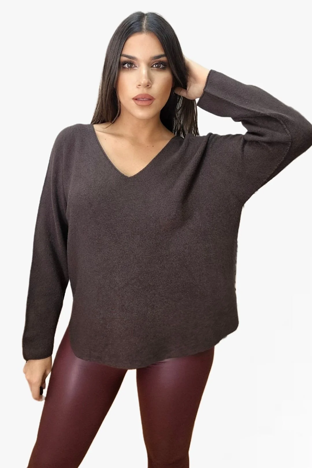 Jersey Cuello Pico Marrón