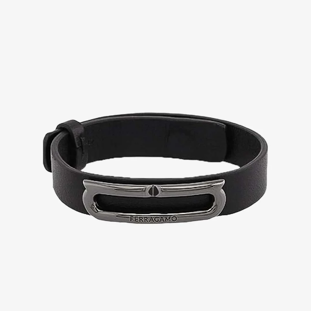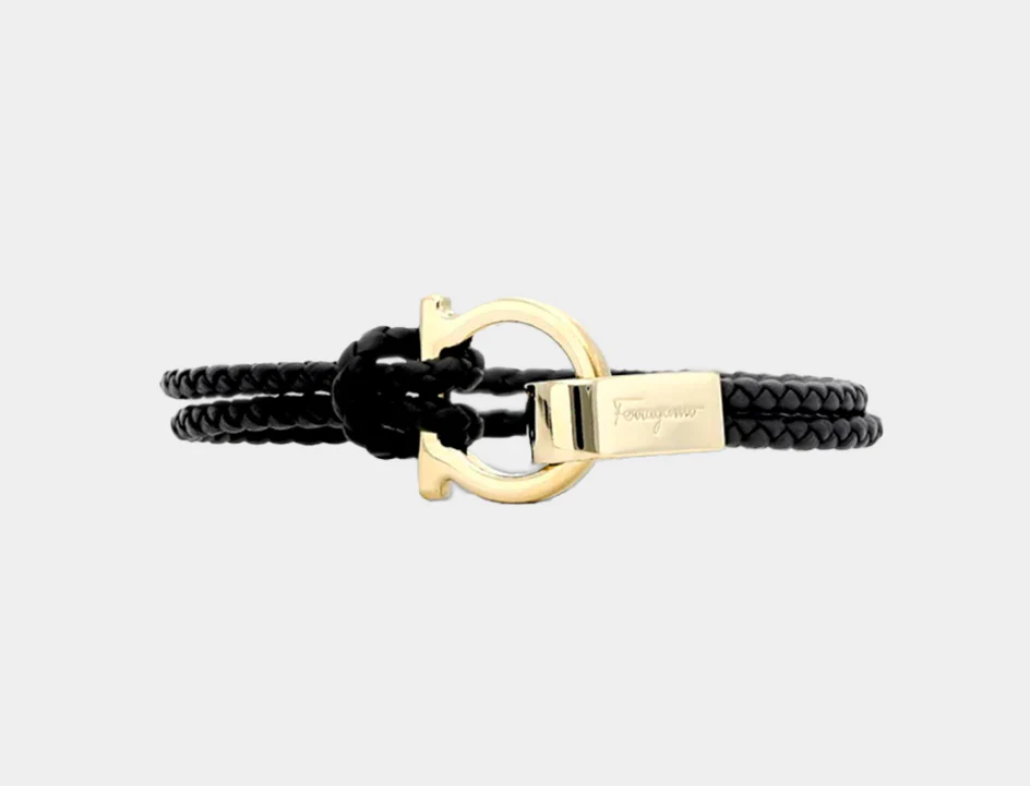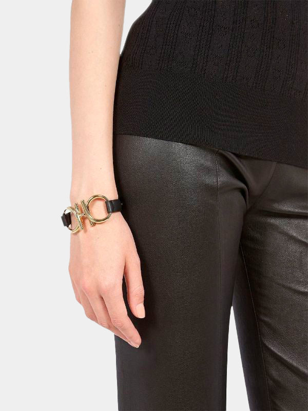 Pulsera Dama Entretejida con Gancini Negro S.F.
