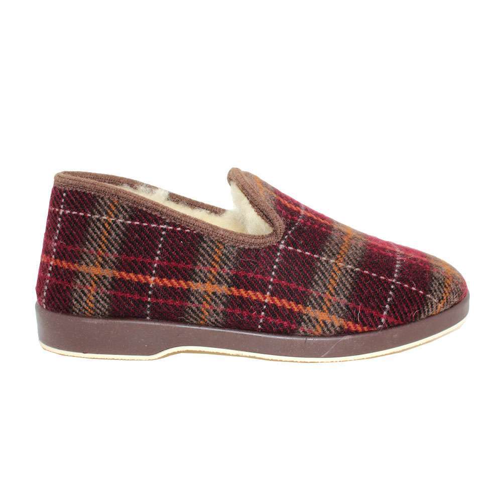 ZAPATILLA CERRADA PELO CUADROS FORRO PURA LANA VIRGEN (43-525) BURDEOS – NORTEÑAS