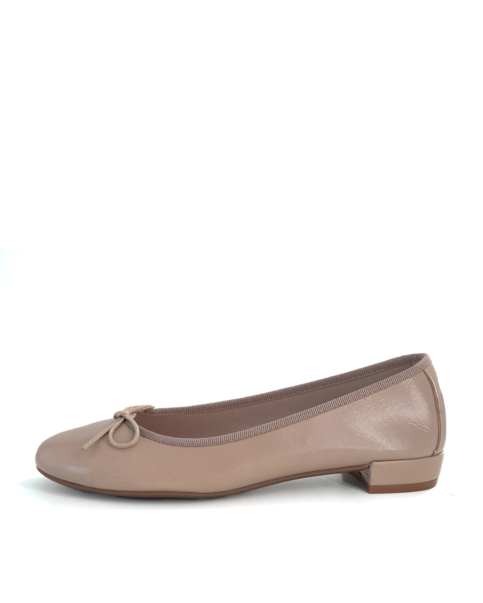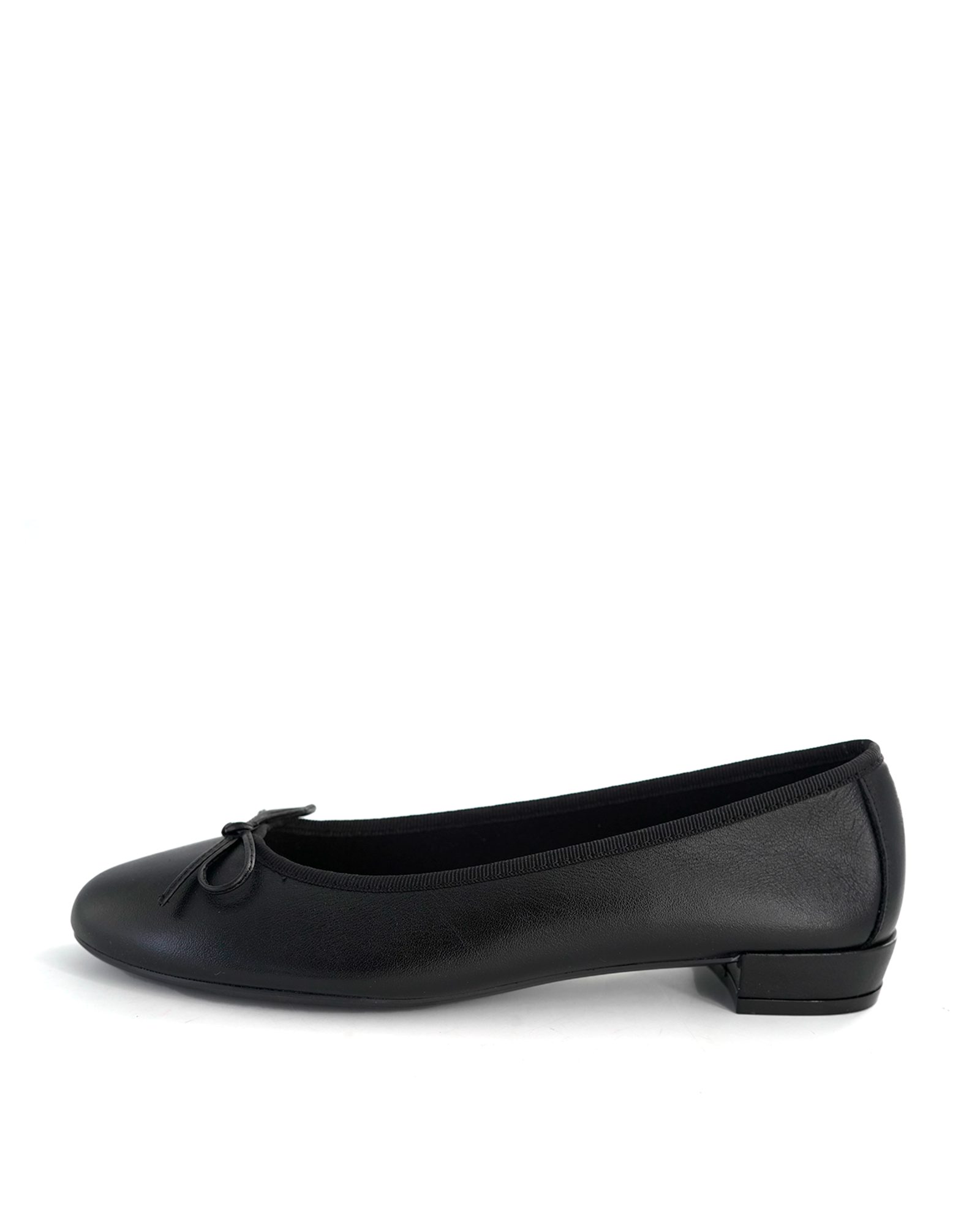 Bailarina de piel y lazo delantero con pequeños detalles como tacon forrado al tono y tambien en piel.