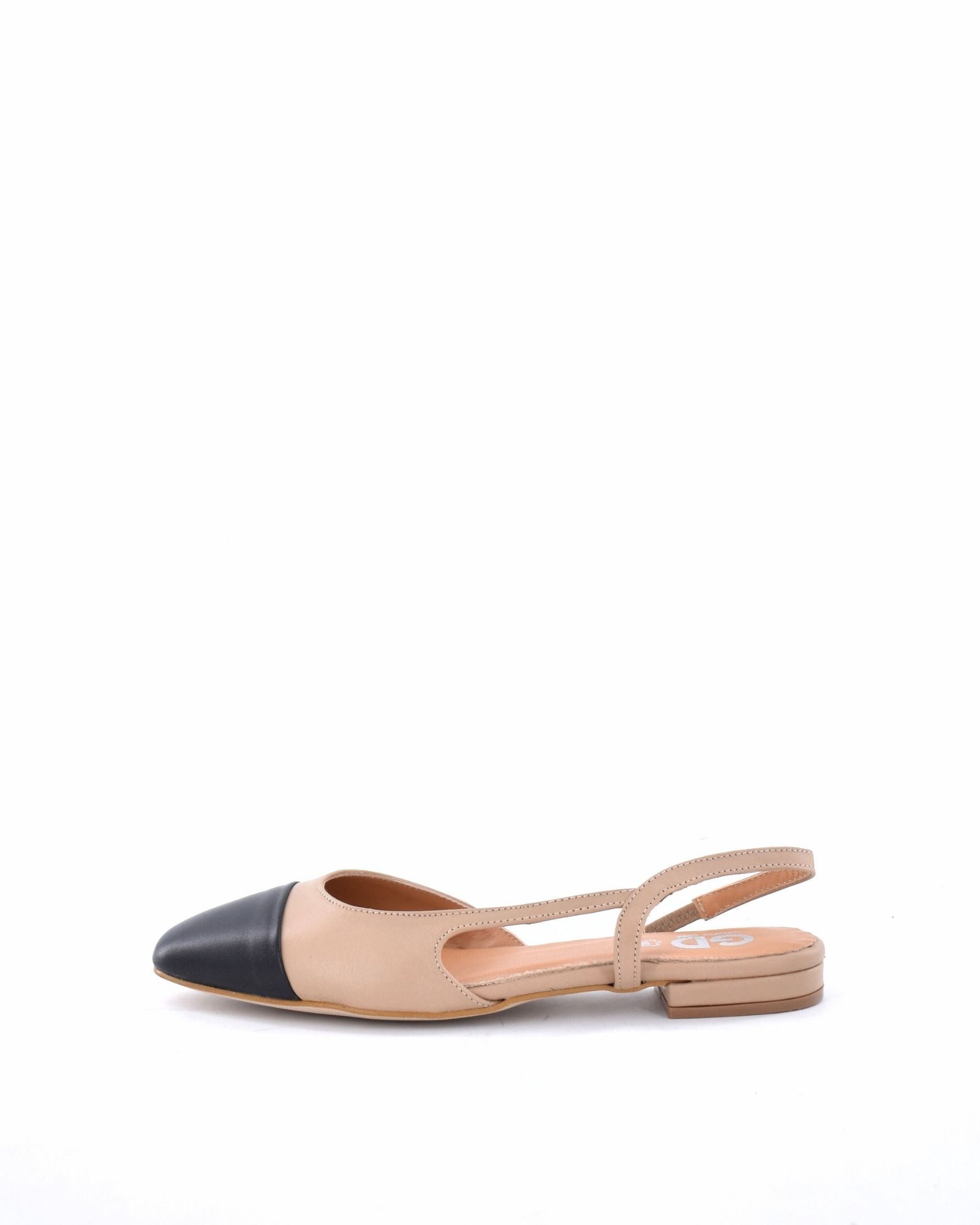 Bailarina bicolor destalonada 100% de piel con tacon forrado en piel y goma para una mayor sujecion.