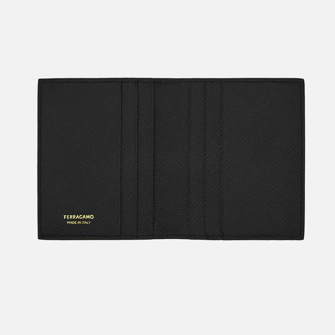 Tarjetero Gancini Negro en Cuero de Dise帽ador