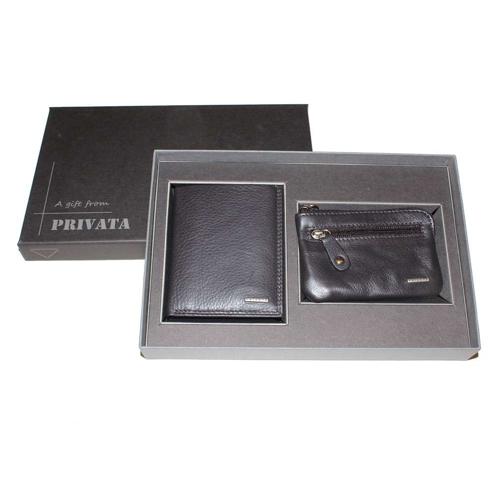 CAJA CON BILLETERO + MONEDERO/LLAVERO (PR00010) PIEL VACUNO – PRIVATA