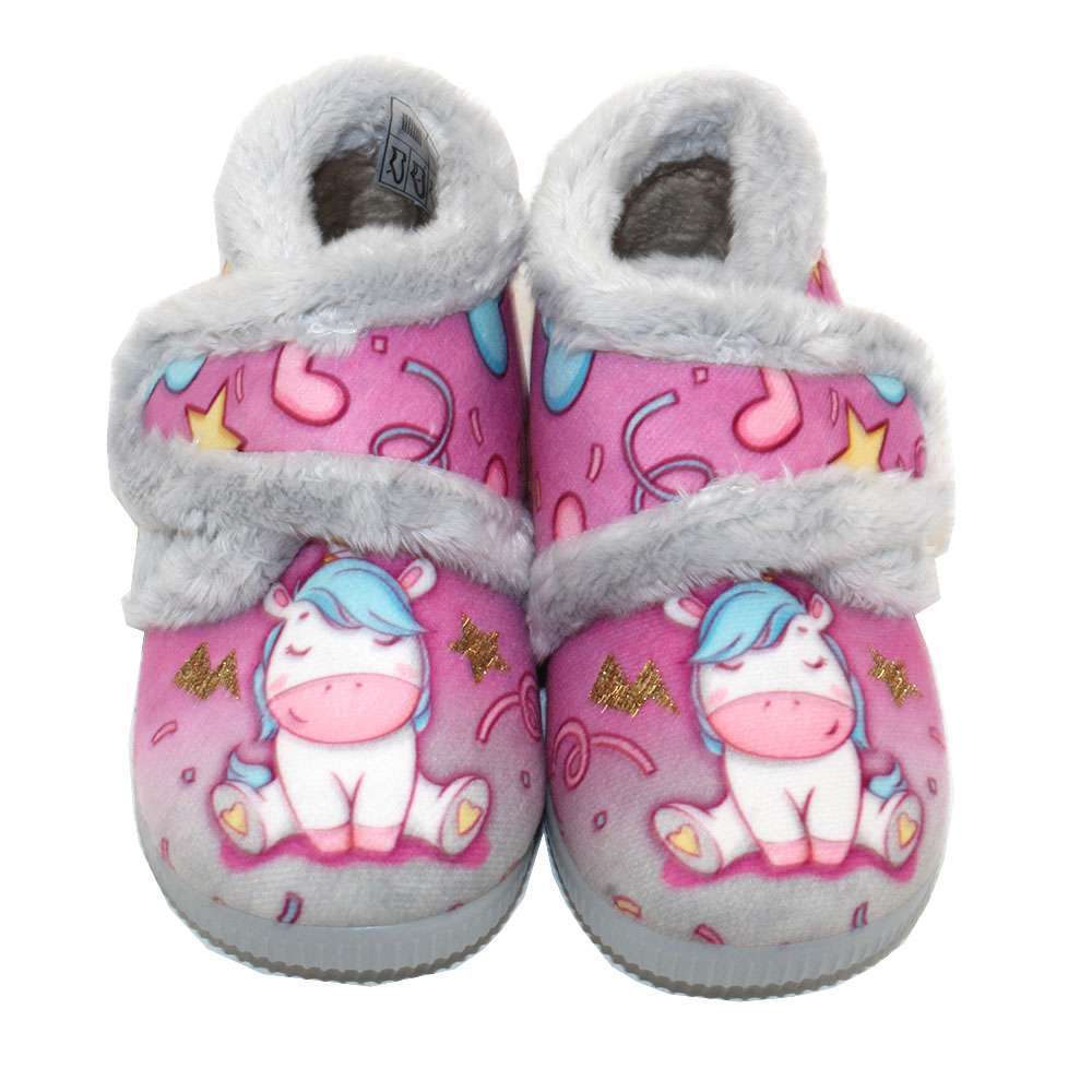 ZAPATILLA BOTITA PEGAR “UNICORNIO SENTADO” (1080) FRESA/GRIS – VULCA-BICHA