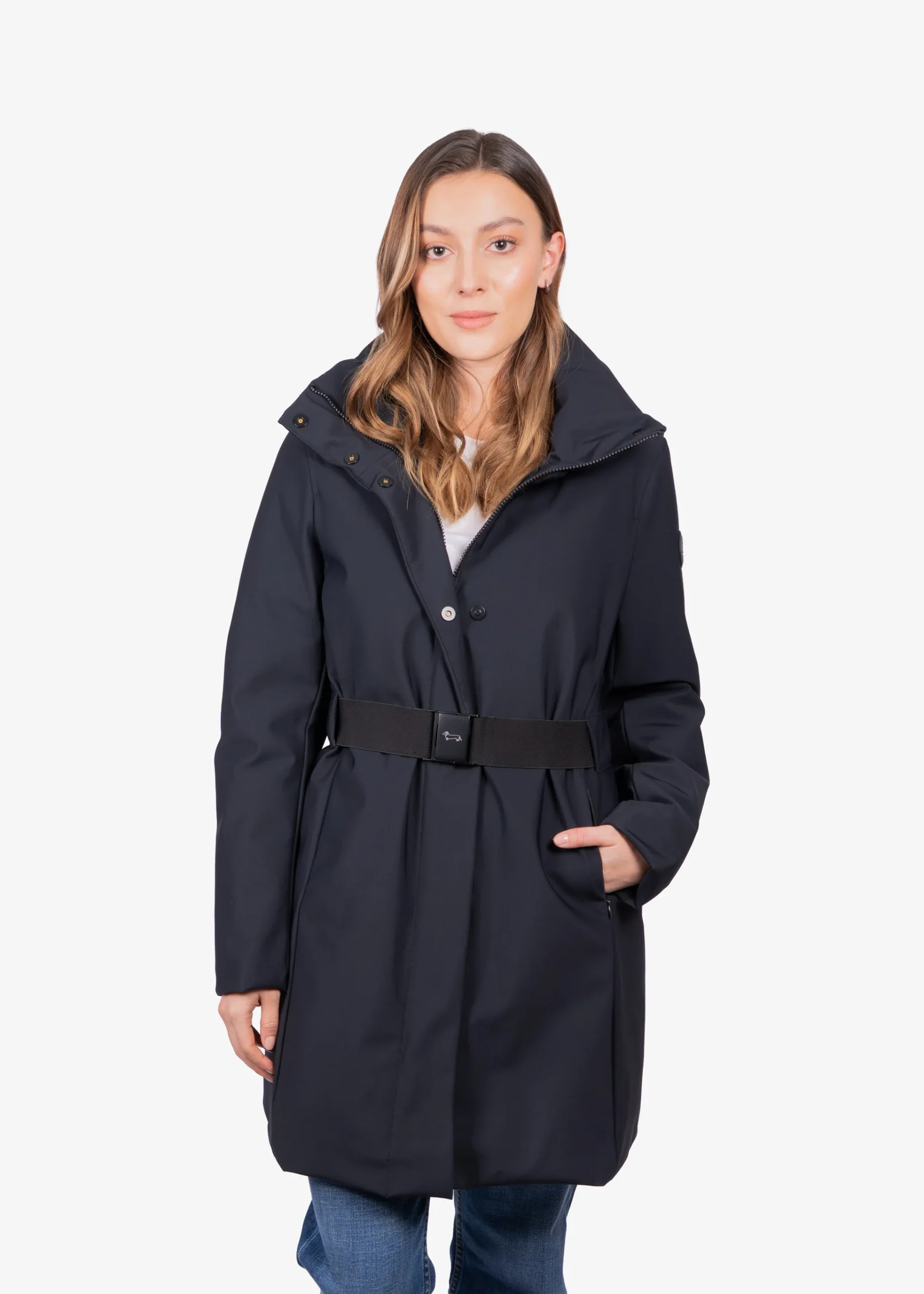 El abrigo negro para dama de Harmont & Blaine, confeccionado en nylon con spandex, ofrece una combinación perfecta de ligereza, comodidad y ajuste impecable. Su diseño clásico y color negro lo hacen una pieza versátil y sofisticada, ideal para mantener el estilo en días fríos. Perfecto para combinar con jeans, pantalones de vestir o faldas, este abrigo refleja el auténtico lujo casual italiano, aportando elegancia atemporal a cualquier ocasión.