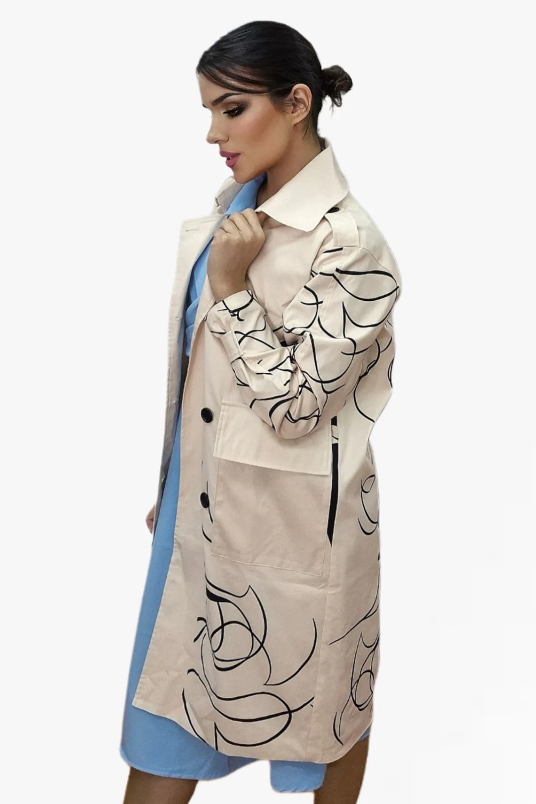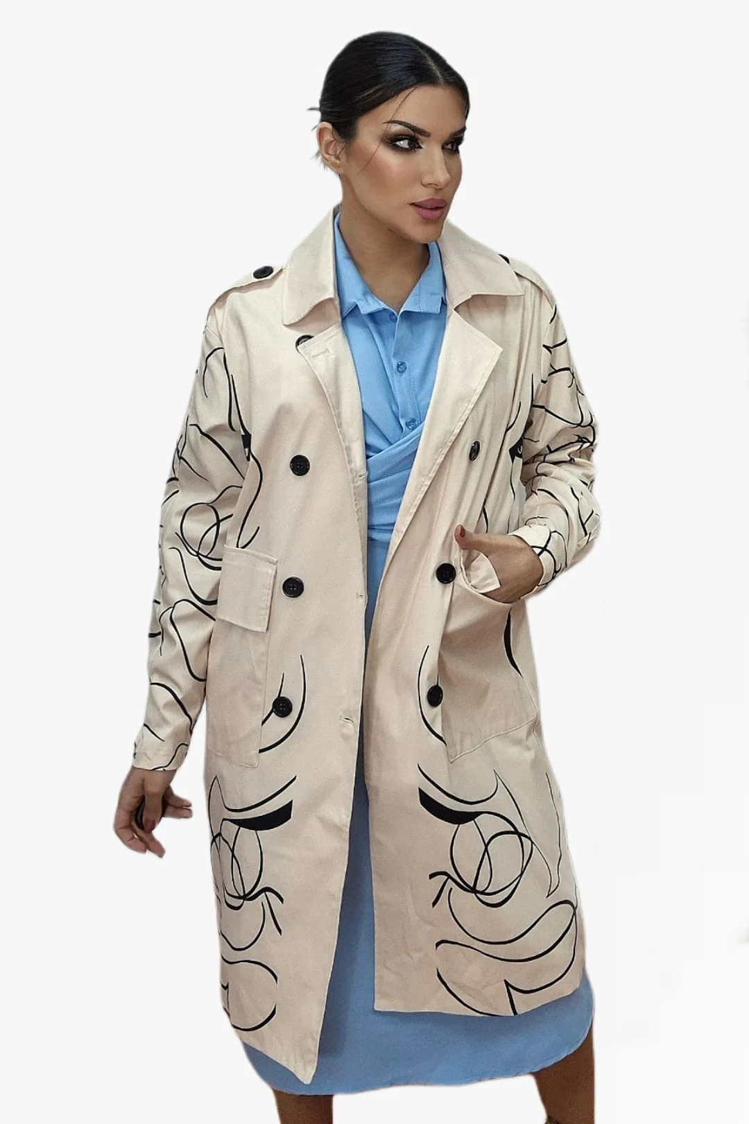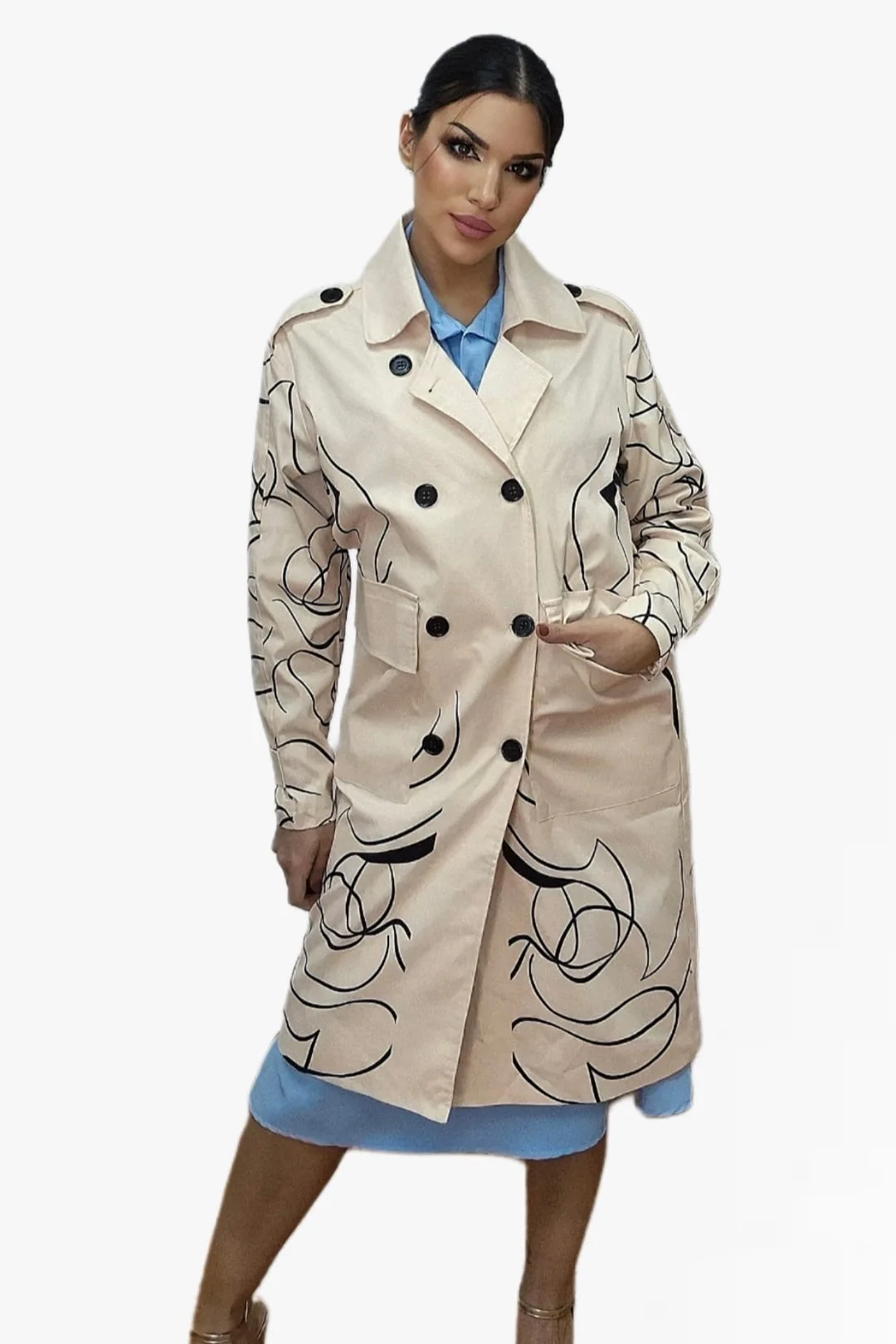 Abrigo largo con estampado de corazones, ideal para dar un toque romántico y original a tus looks de temporada. Disponible en dos colores de fondo —beige o negro— para que elijas el que mejor encaje con tu estilo. Diseño recto, cuello solapa y cierre frontal con botones. Un abrigo cómodo, ligero y lleno de personalidad.