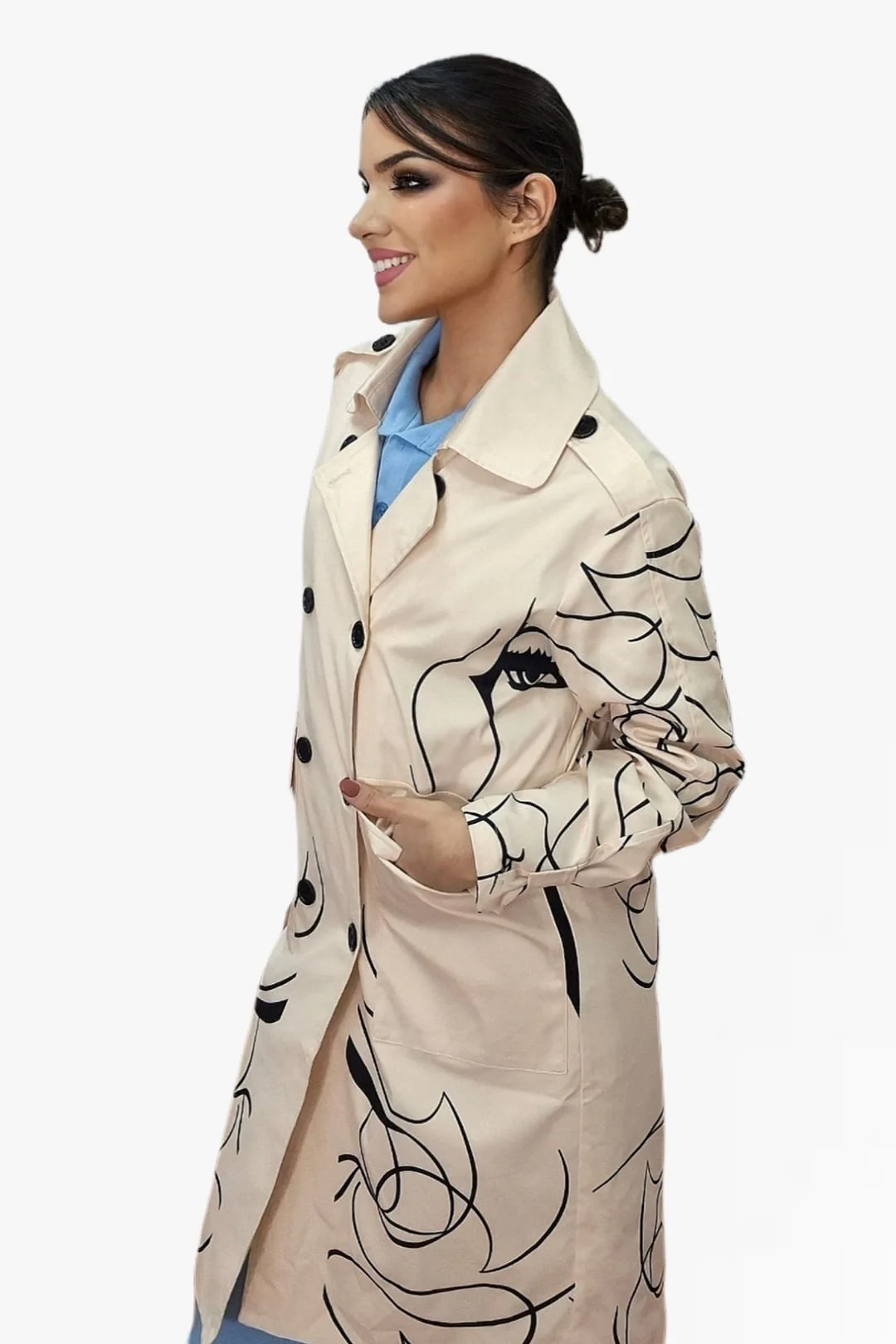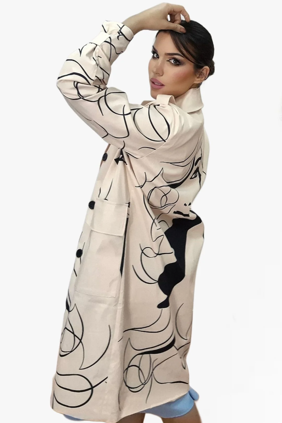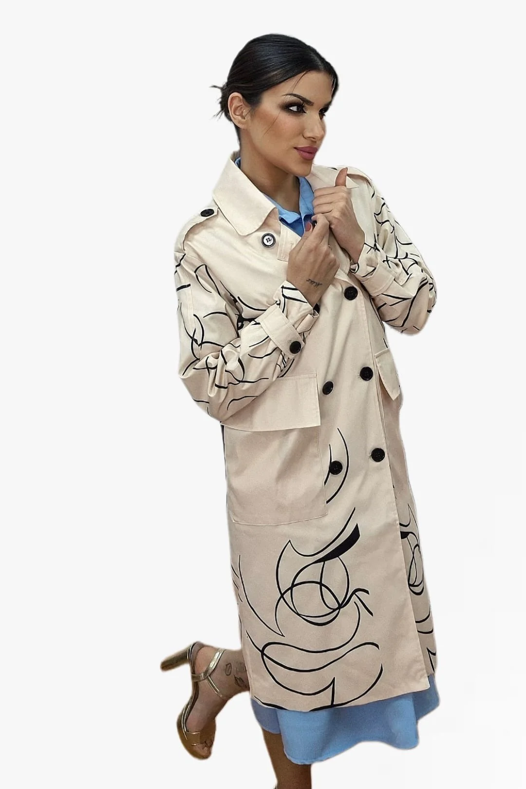 Abrigo largo con estampado de corazones, ideal para dar un toque romántico y original a tus looks de temporada. Disponible en dos colores de fondo —beige o negro— para que elijas el que mejor encaje con tu estilo. Diseño recto, cuello solapa y cierre frontal con botones. Un abrigo cómodo, ligero y lleno de personalidad.