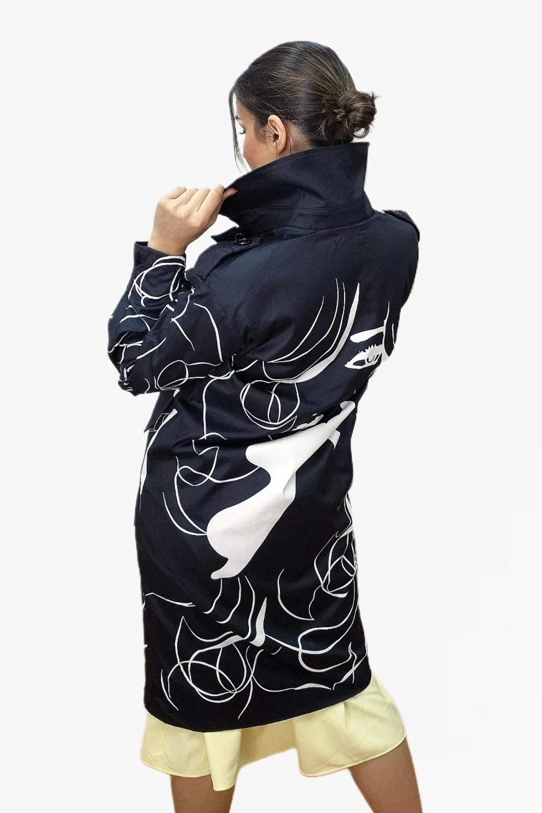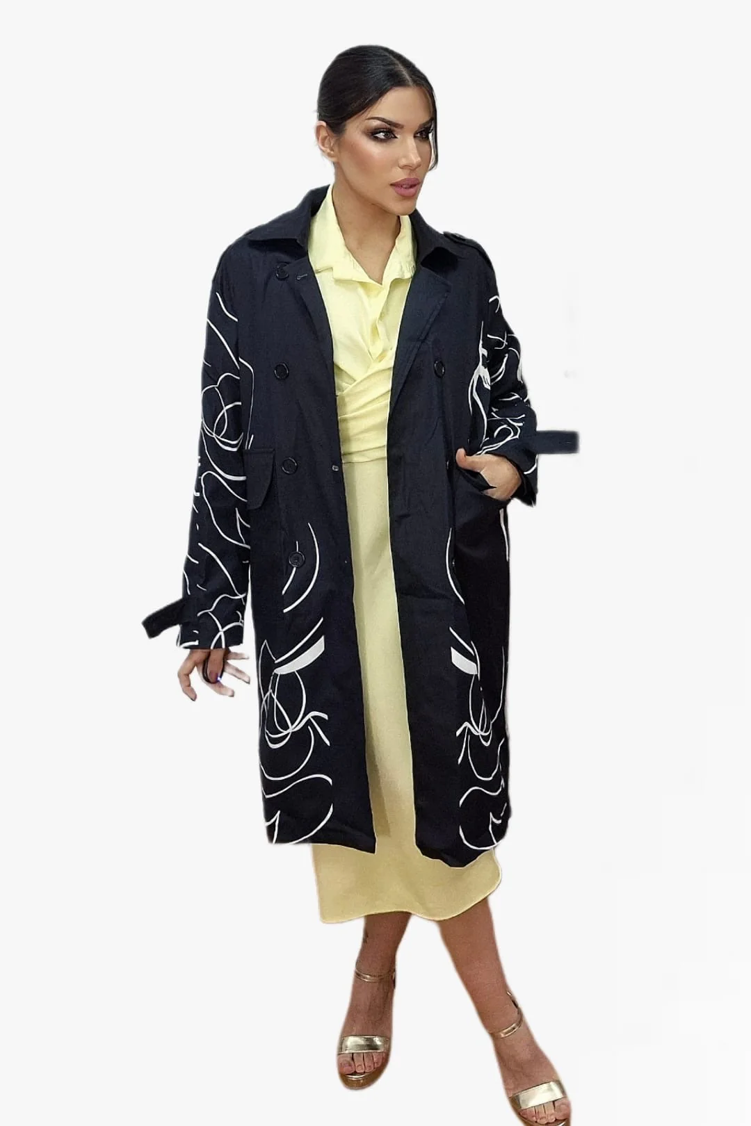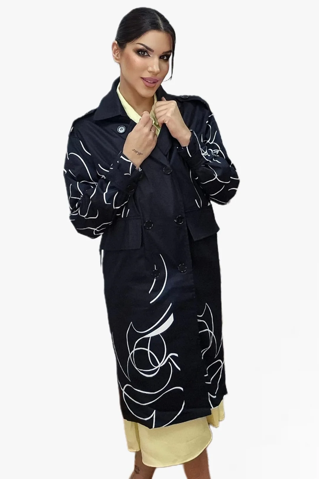 Abrigo largo con estampado de corazones, ideal para dar un toque romántico y original a tus looks de temporada. Disponible en dos colores de fondo —beige o negro— para que elijas el que mejor encaje con tu estilo. Diseño recto, cuello solapa y cierre frontal con botones. Un abrigo cómodo, ligero y lleno de personalidad.