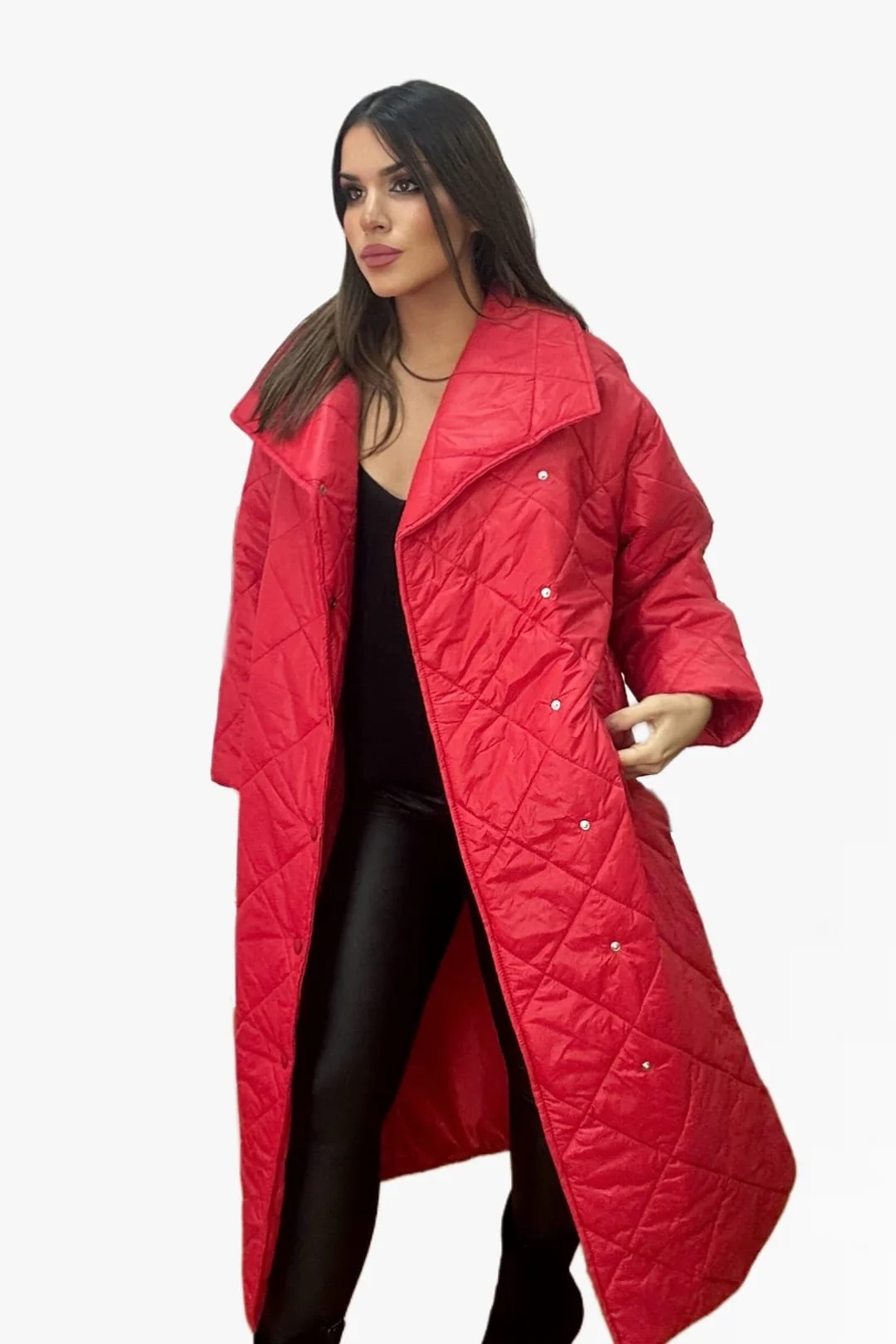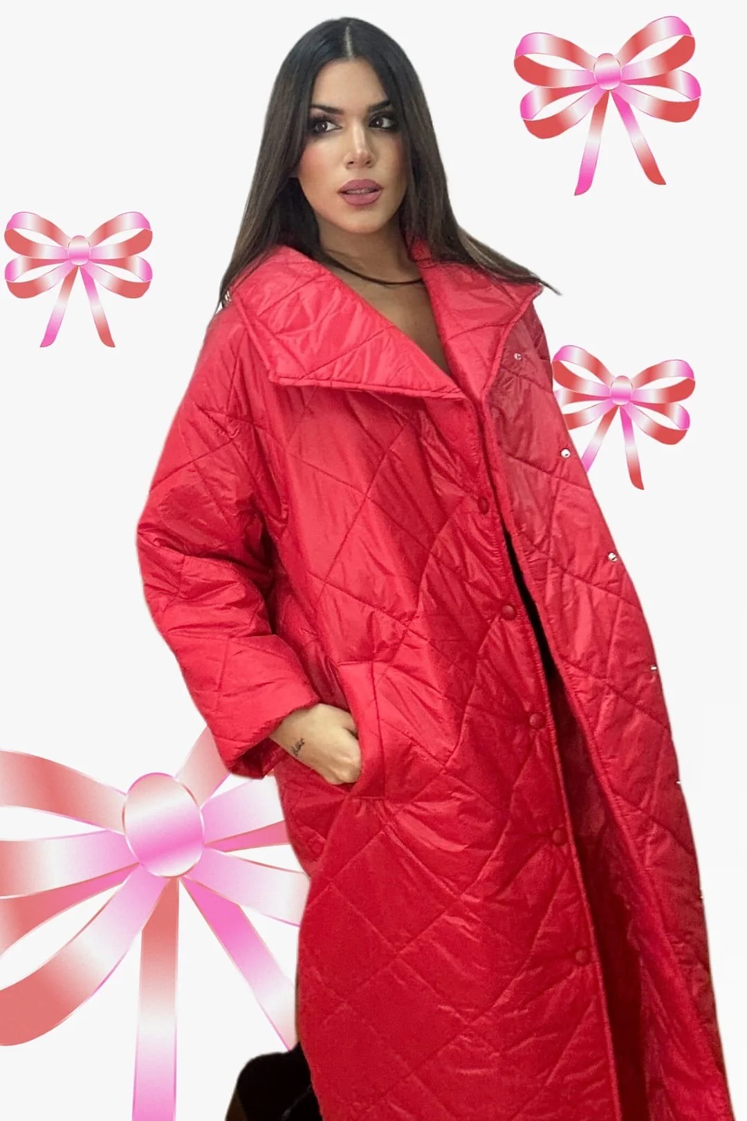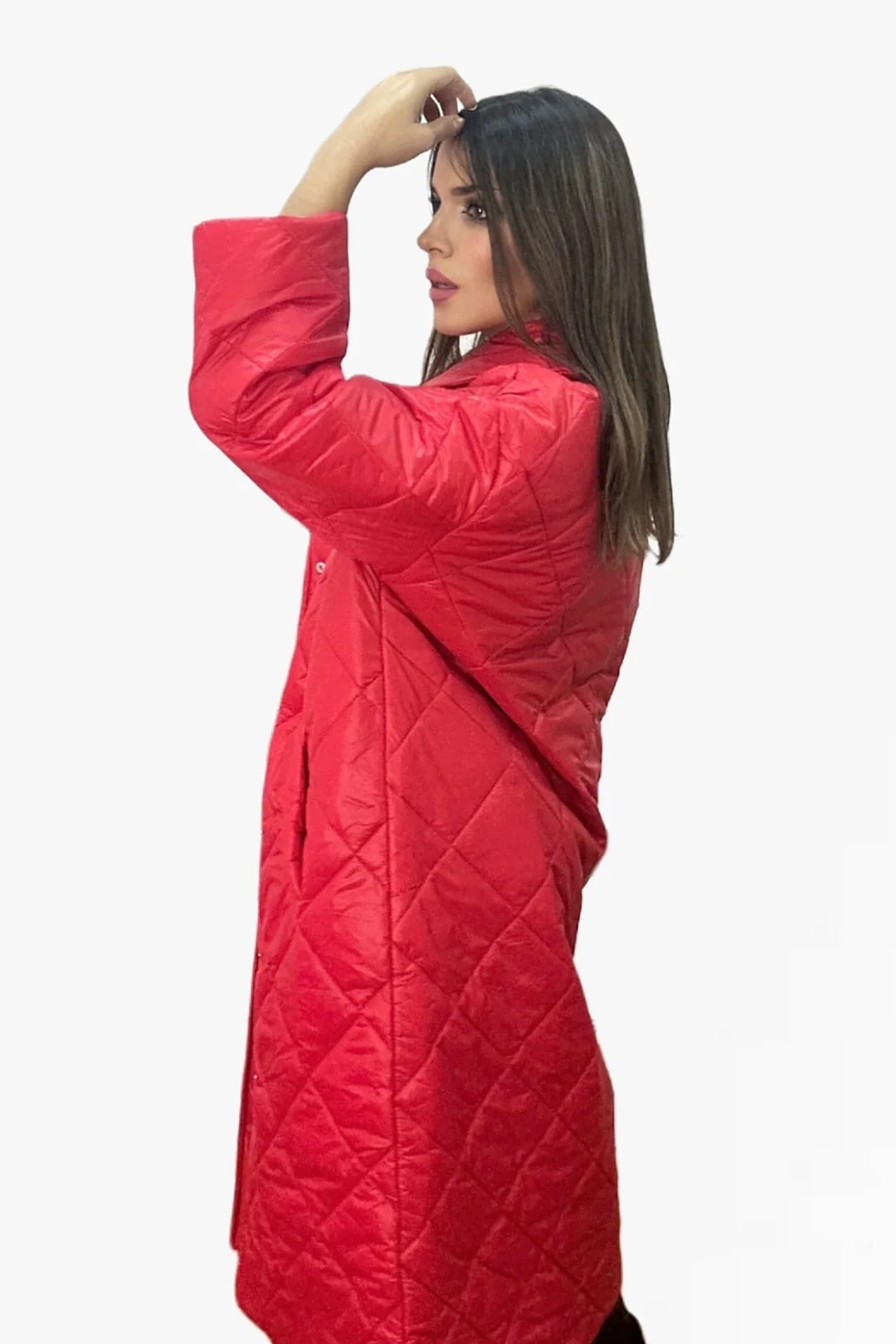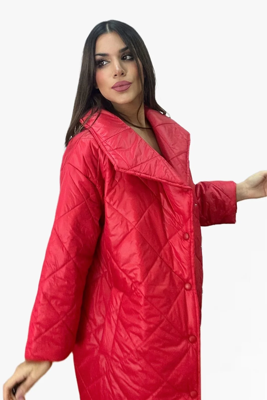 Abrigo acolchado oversize, solapa grande, con bolsillos y abotonado.