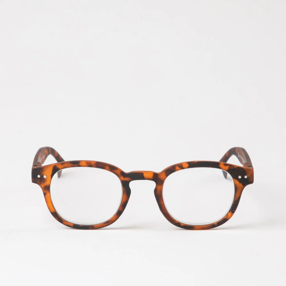 Lentes de lectura Gen Turtle de color café. Anteojos de marco cuadrado redondeado de color café. Cuenta con 1.0, 1.5, 2.0, 2.5 y 3.0 de aumento.
