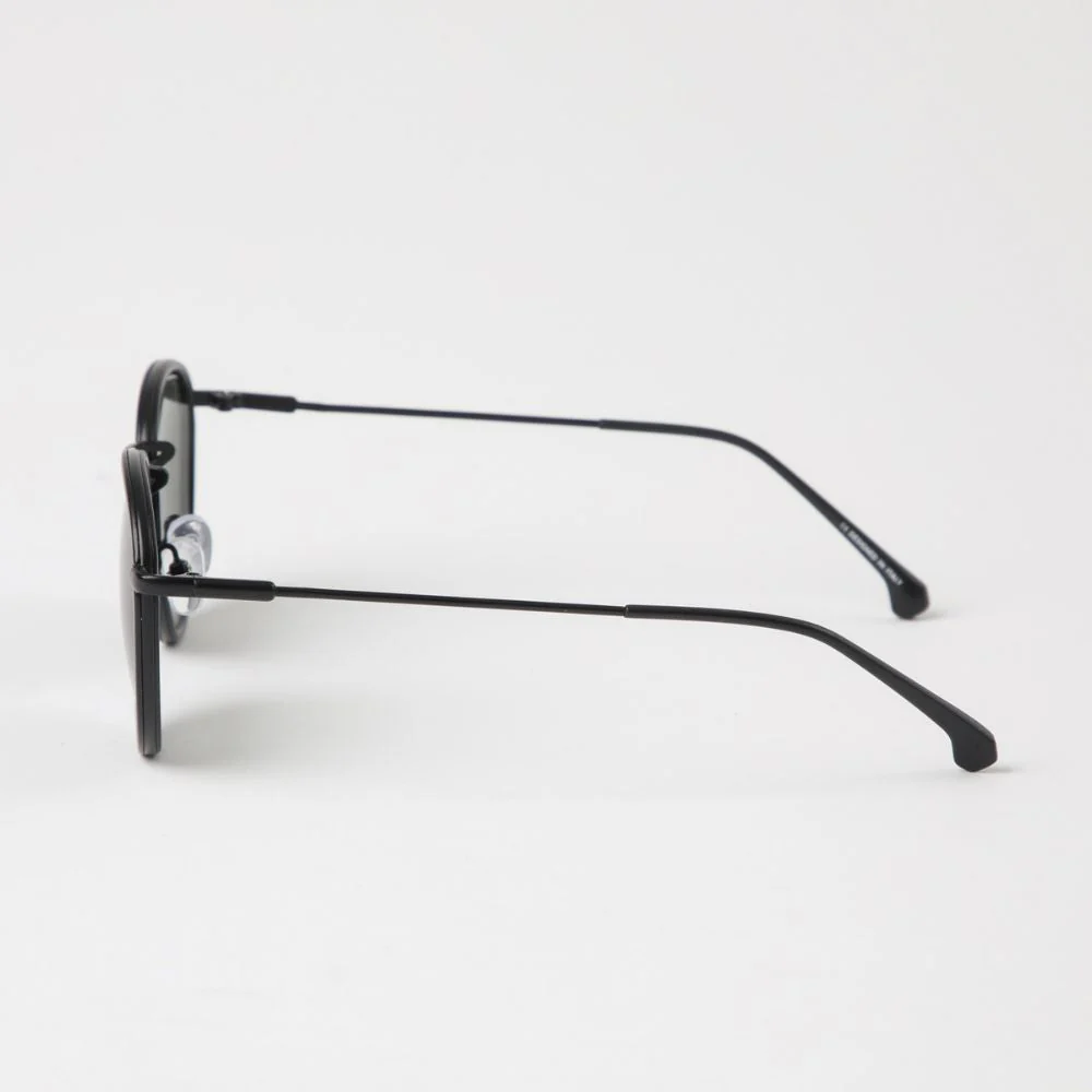 Anteojos de sol estilo phantos con marco metálico negro. Lente en color negro. Viene con estuche de ecocuero gris y pañito para limpiar. Filtro UV *