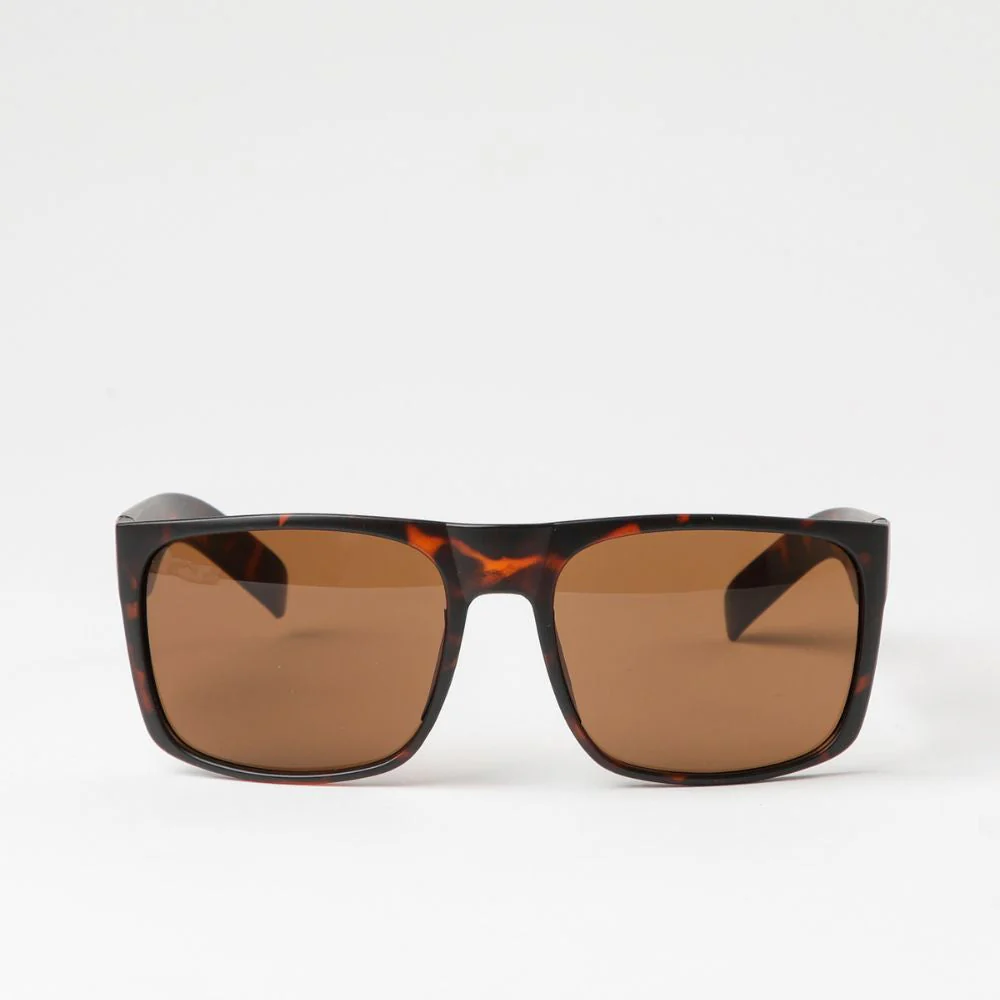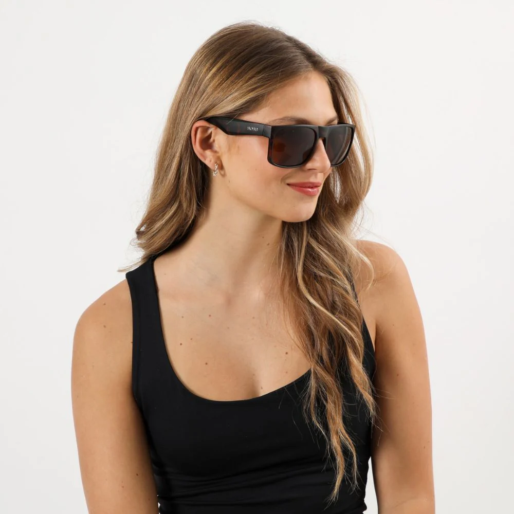 Anteojos de sol Coron Brown estilo «wrap» con montura en acabado carey de tonalidades cafés. Lente en color café.