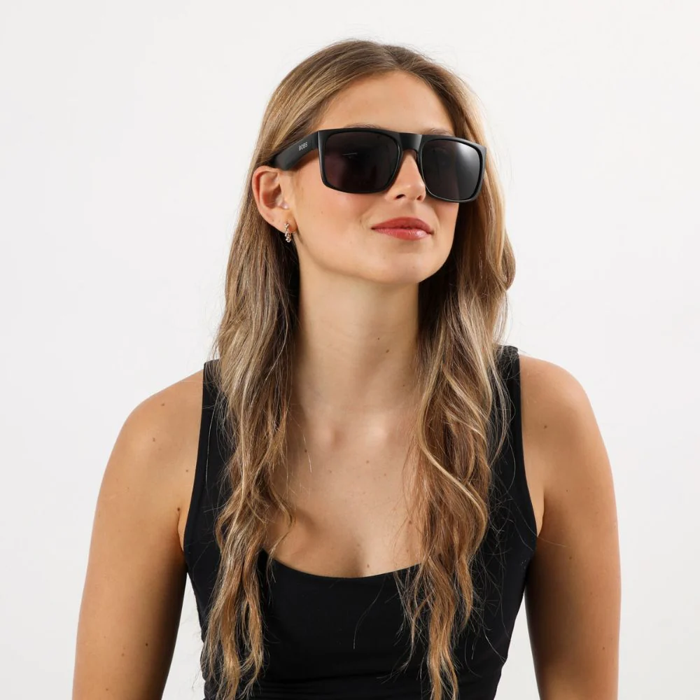 Anteojos de sol Coron Black estilo «wrap» negro. Lente en color negro azulado.