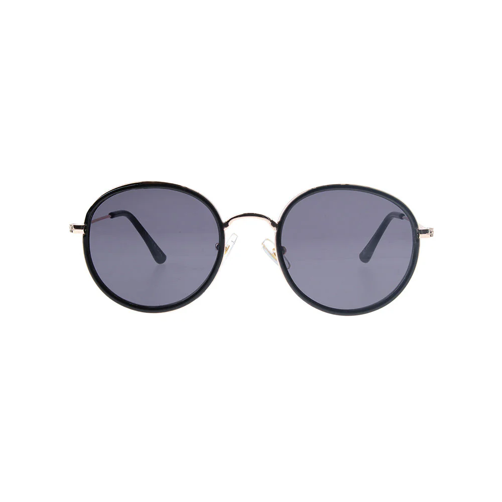 Anteojos de sol iD Sofia Black negros. Con marco redondo metálico negro y dorado. Protección 400UV.