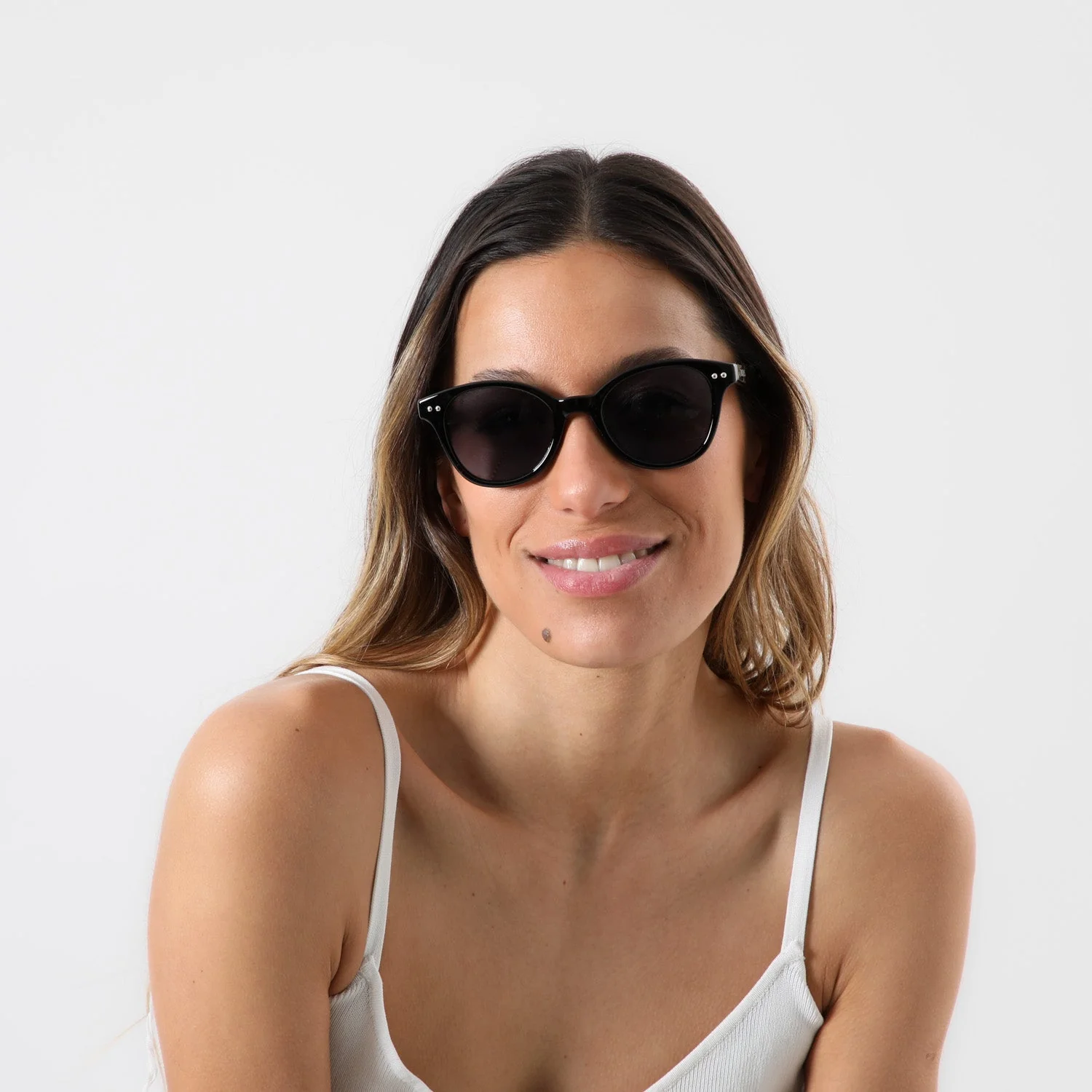 Anteojos Sol BOBS Boracay de color negro. Anteojos de marco con forma cat-eye redondo color negro brillante y lentes de color negro.