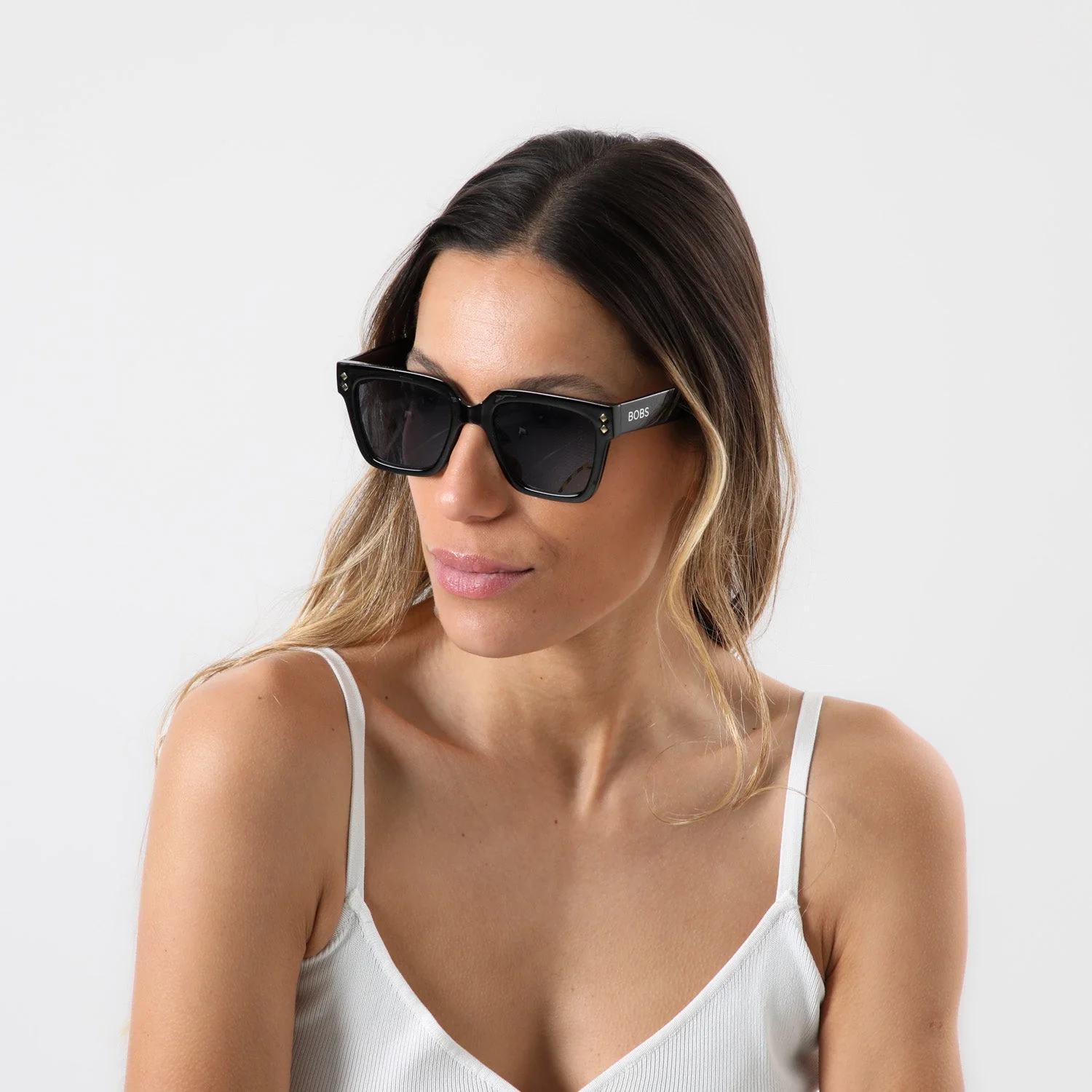 Anteojos Sol BOBS Jaco de color negro. Anteojos de marco cuadrado negro con detalles plateados y lentes de color negro.