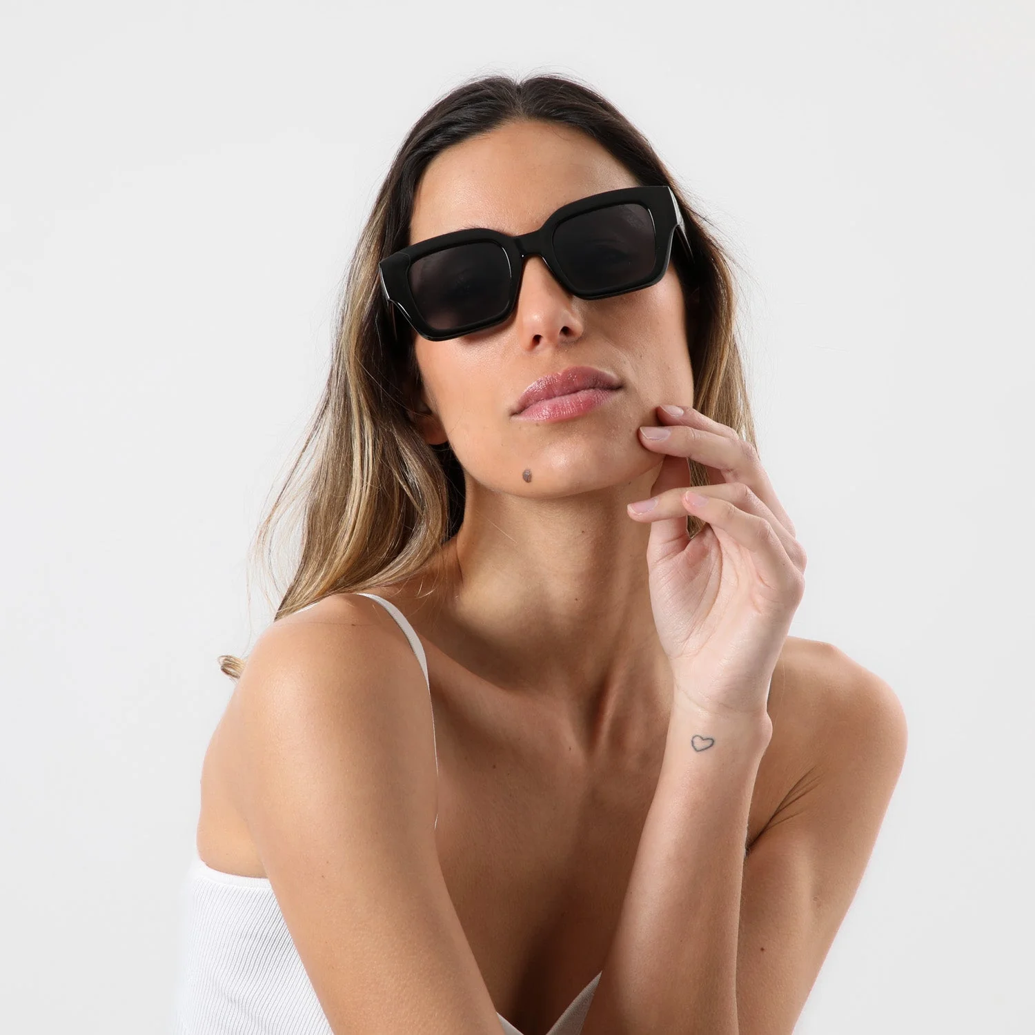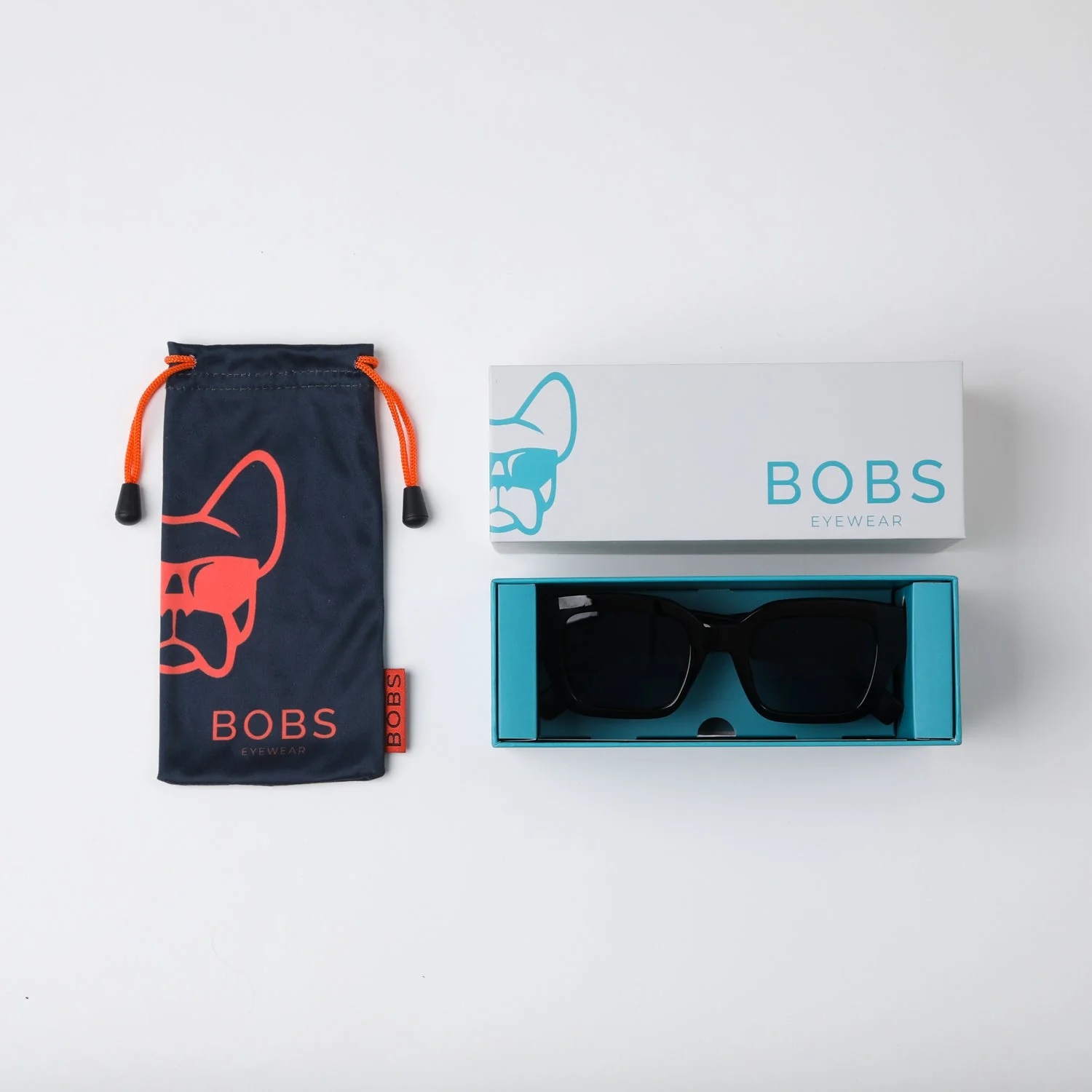 Anteojos Sol BOBS Lajoya de color negro. Anteojos con marco grueso rectangular y lentes de color negro.