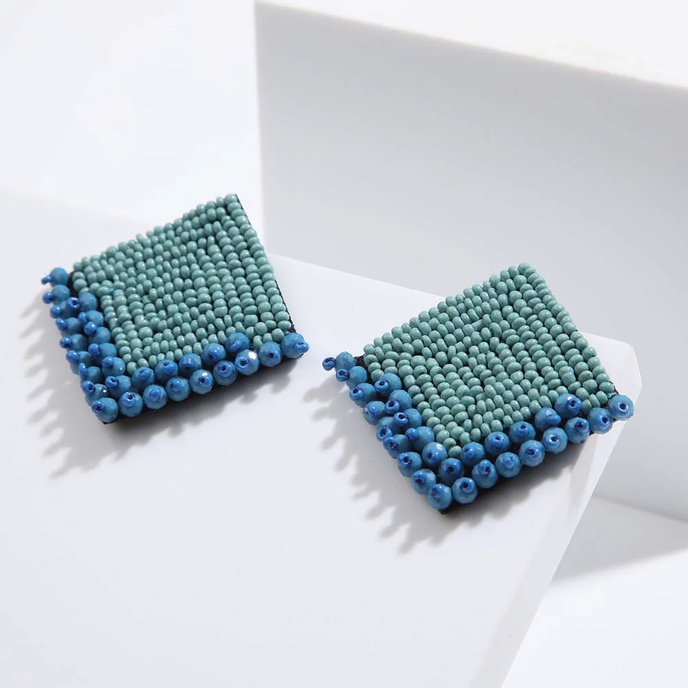 Aros Humana Valencia largos azul que pertenecen a la colección Cornflower blue. Aros de forma cuadrada combinado con mostacillas de color celeste y azul.