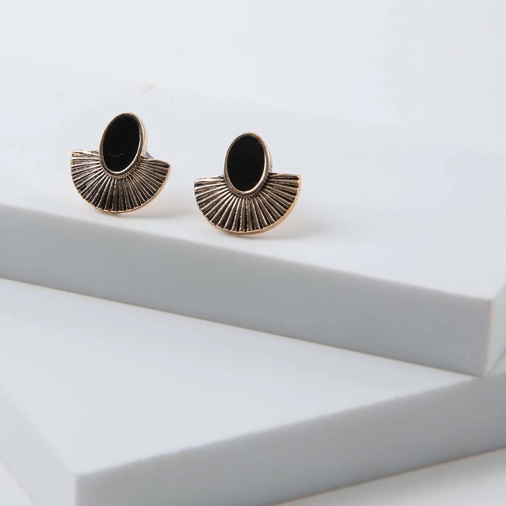 Aros dorados compuestos de una semi circunferencias y un ovalo con avabado en color negro