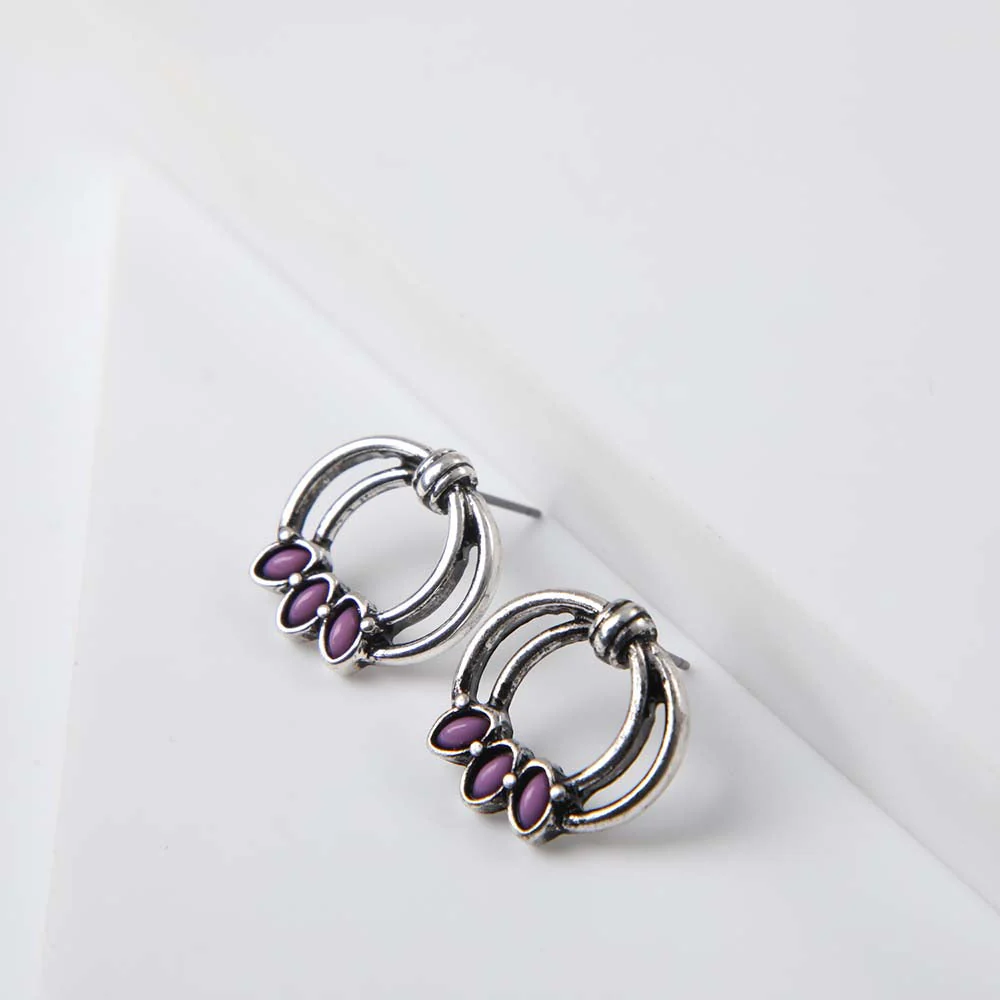 Aro Pegado Humana Ranúnculo de color rosado perteneciente a la colección Pink Diamond. Está compuesto por dos argollas superpuestas y tres piedras rosadas.