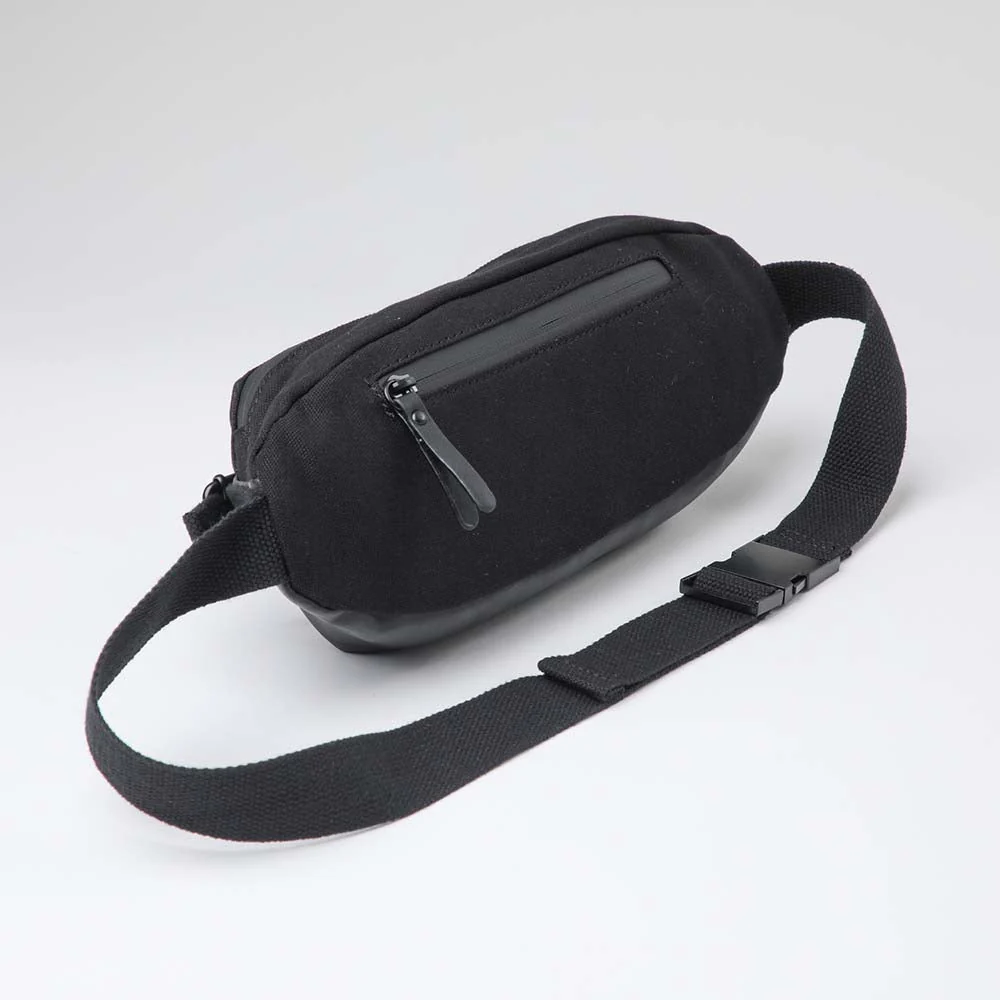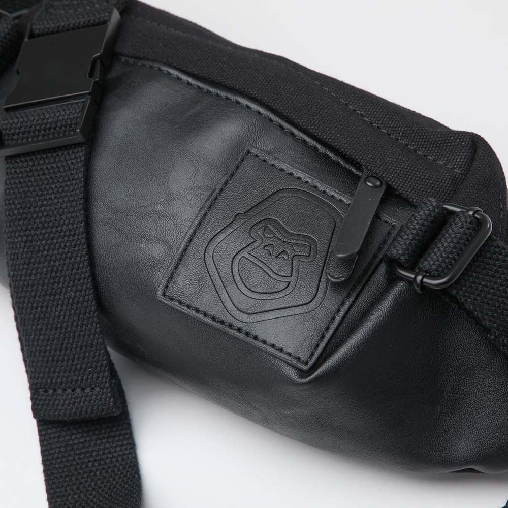 Banano Gorillaz de color negro. Este banano tine una mezcla entre tela y ecocuero ambas de color negro. Tiene un bolsillo rpincipal grande, un bolsillo en el frente y uno en la parte posterior. Su strap es ajustable y cuenta con broches en ambos costados